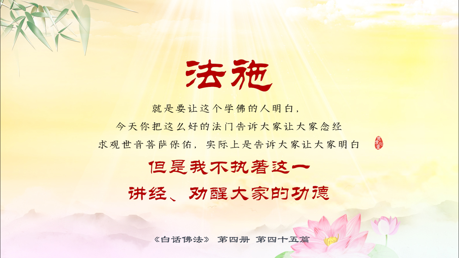 不限会员 4-45-1法施,就是要让这个学佛的人明白,今天你把这么好的法门告诉大家让大家念经,求观世音菩萨保佑,实际上是告诉大家让大家明白。但是我不执着这一讲经、劝醒大家的功德.【图】