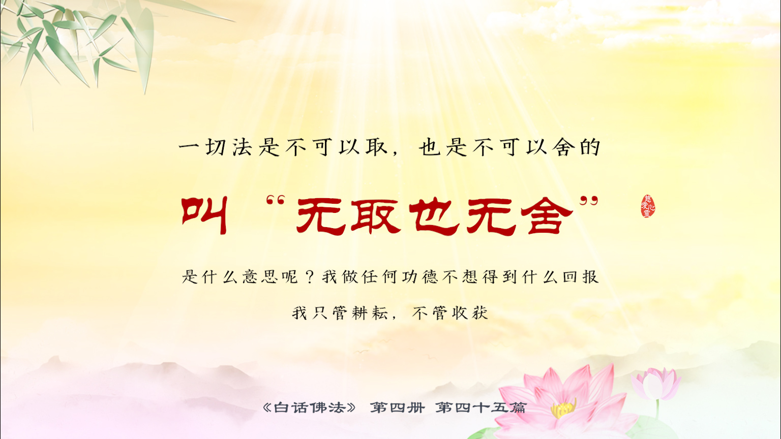 不限会员 4-45-6 一切法是不可以取,也是不可以舍的,叫“无取也无舍”。是什么意思呢?我做任何功德不想得到什么回报,我只管耕耘,不管收获.【图】