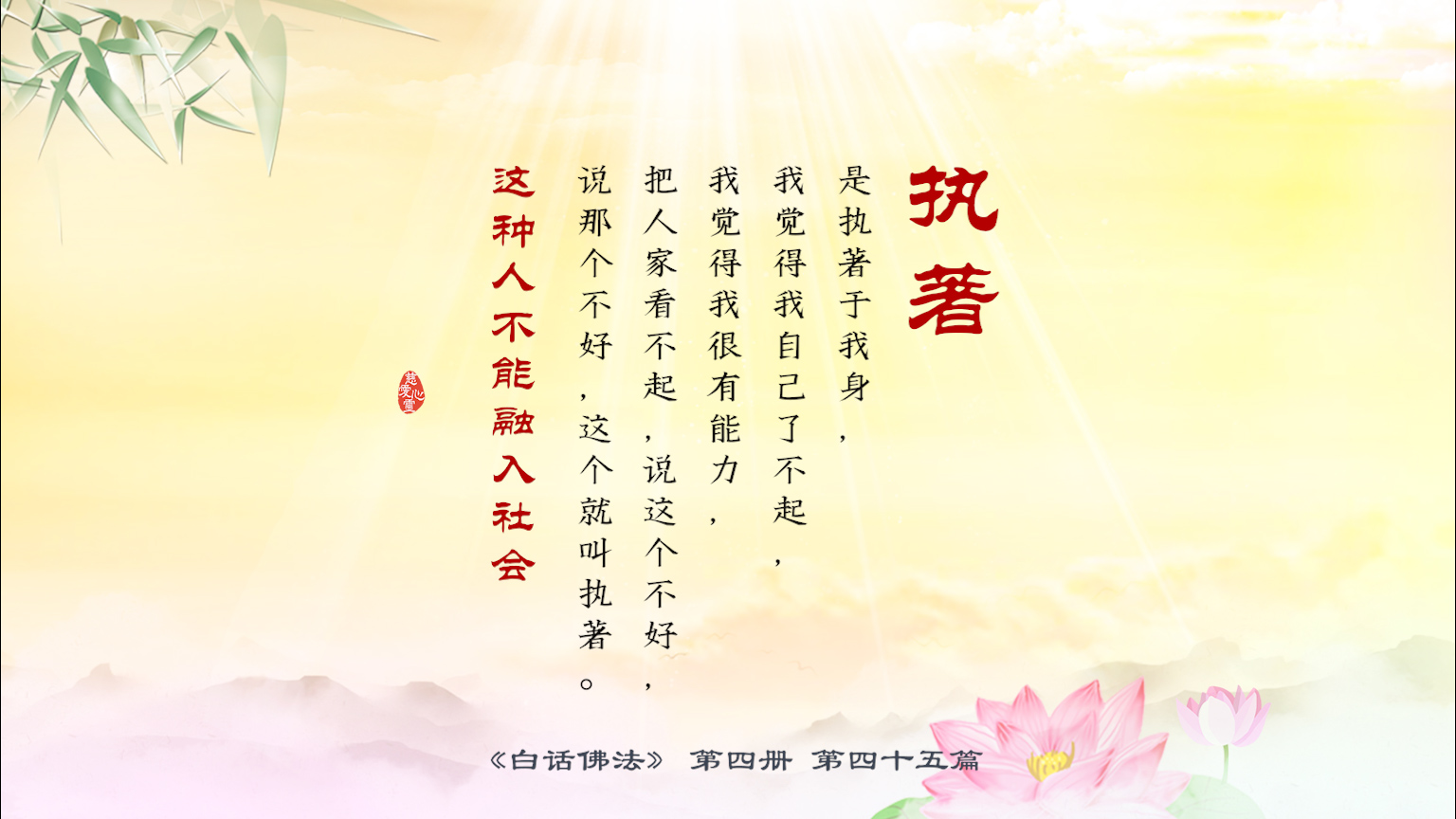 不限会员 4-45-26 执着是什么?执着是执着于我身,我觉得我自己了不起,我觉得我很有能力,把人家看不起,说这个不好,说那个不好,这个就叫执着。这种人不能融入社会.【图】