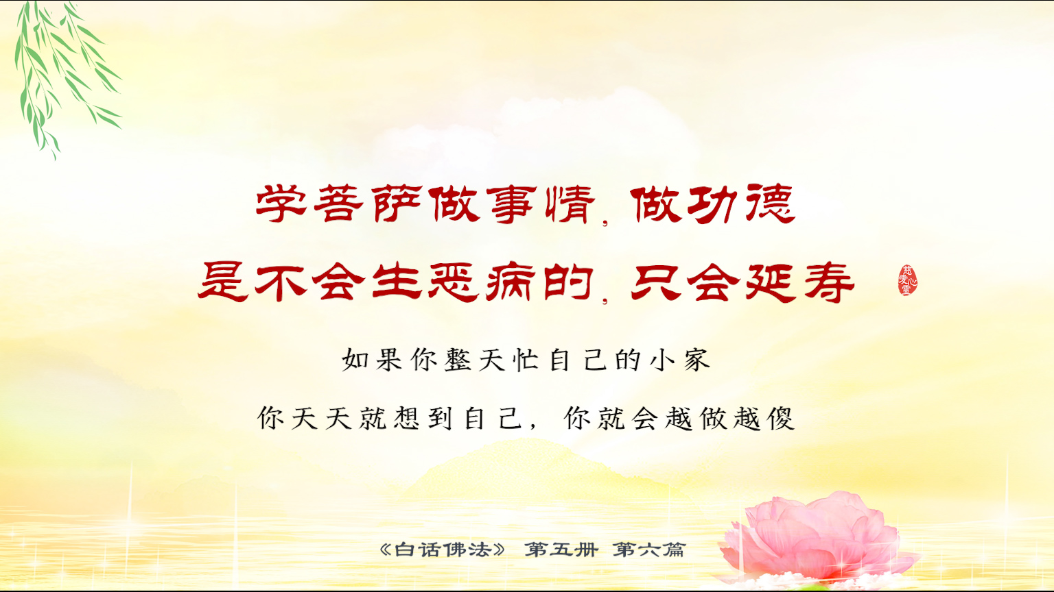 不限会员 5-6-26 学菩萨做事情,做功德,是不会生恶病的,只会延寿。如果你整天忙自己的小家,你天天就想到自己,你就会越做越傻.【图】