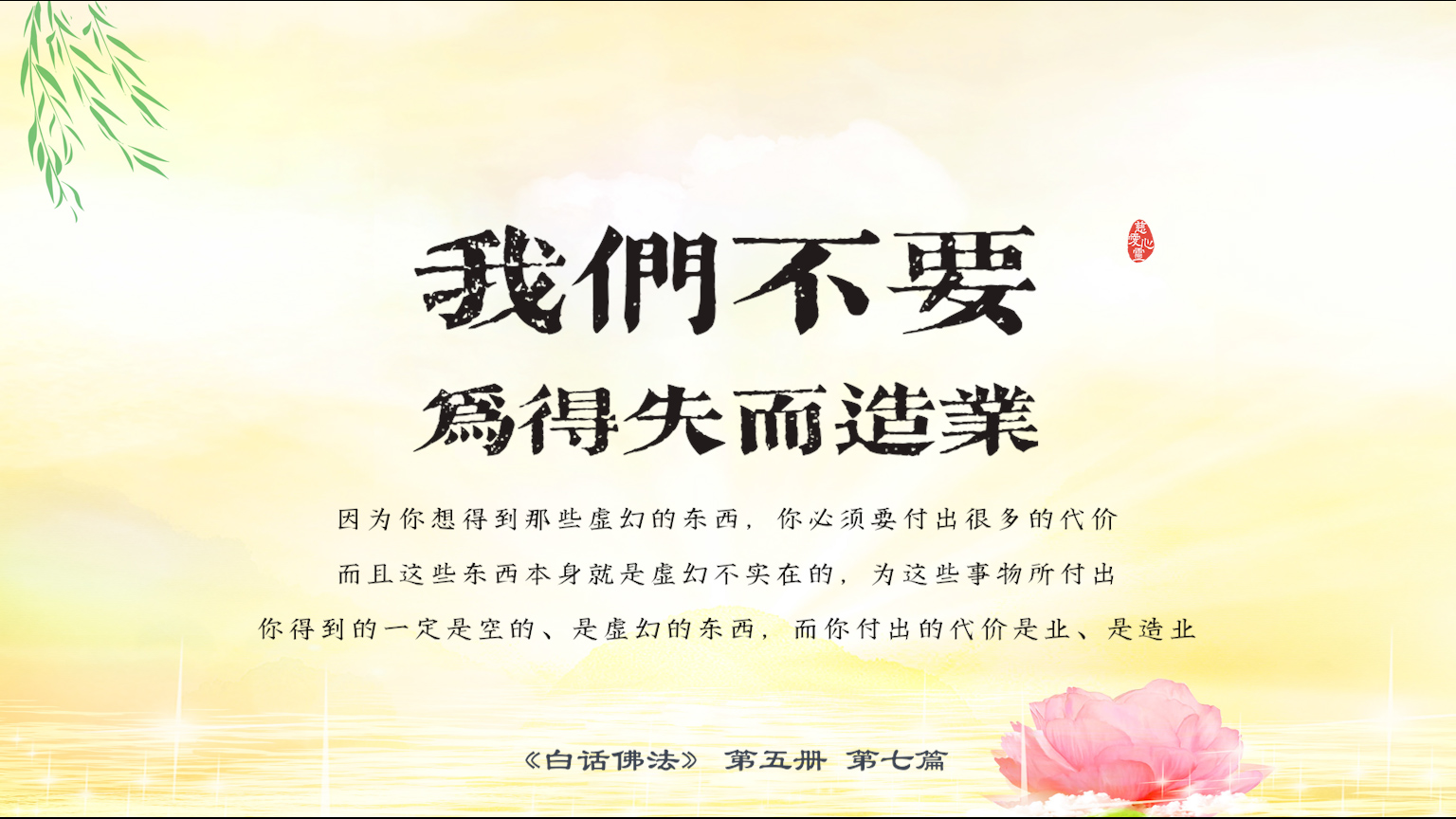不限会员 5-7-27我们不要为得失而造业。因为你想得到那些虚幻的东西,你必须要付出很多的代价,而且这些东西本身就是虚幻不实在的,为这些事物所付出,你得到的一定是空的、是虚幻的东.【图】