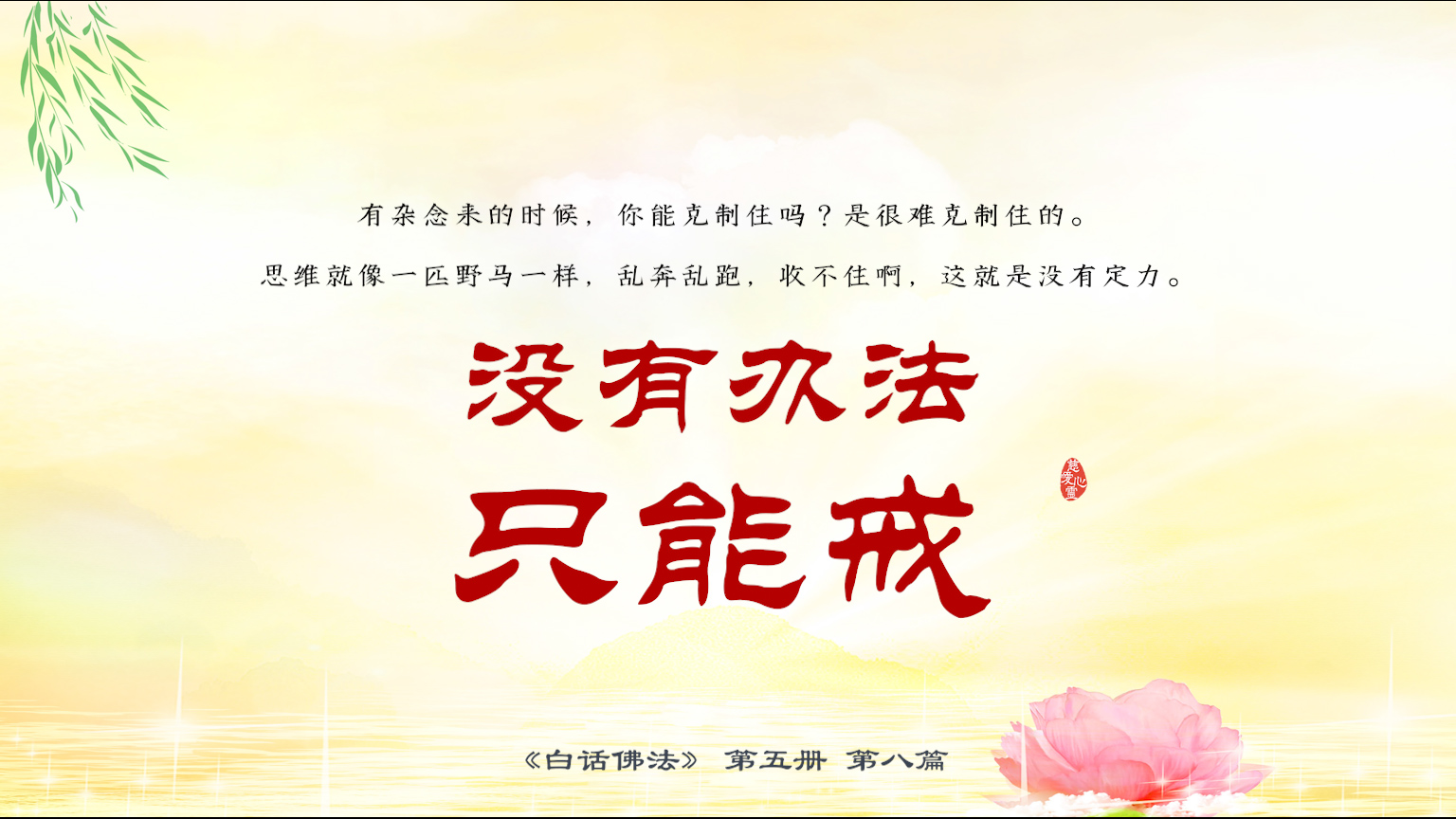 不限会员 5-8-17 有杂念来的时候,你能克制住吗?是很难克制住的。思维就像一匹野马一样,乱奔乱跑,收不住啊,这就是没有定力。没有办法,只能戒.【图】