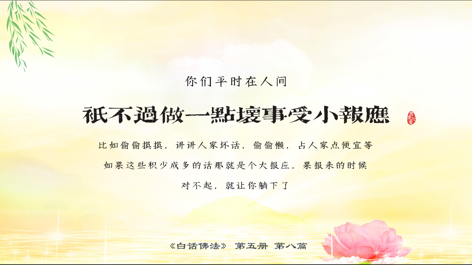 不限会员 5-8-30 你们平时在人间只不过做一点坏事受小报应,比如偷偷摸摸,讲讲人家坏话,偷偷懒,占人家点便宜等,这些来的都是小报应。如果这些积少成多的话那就是个大报应.【图】