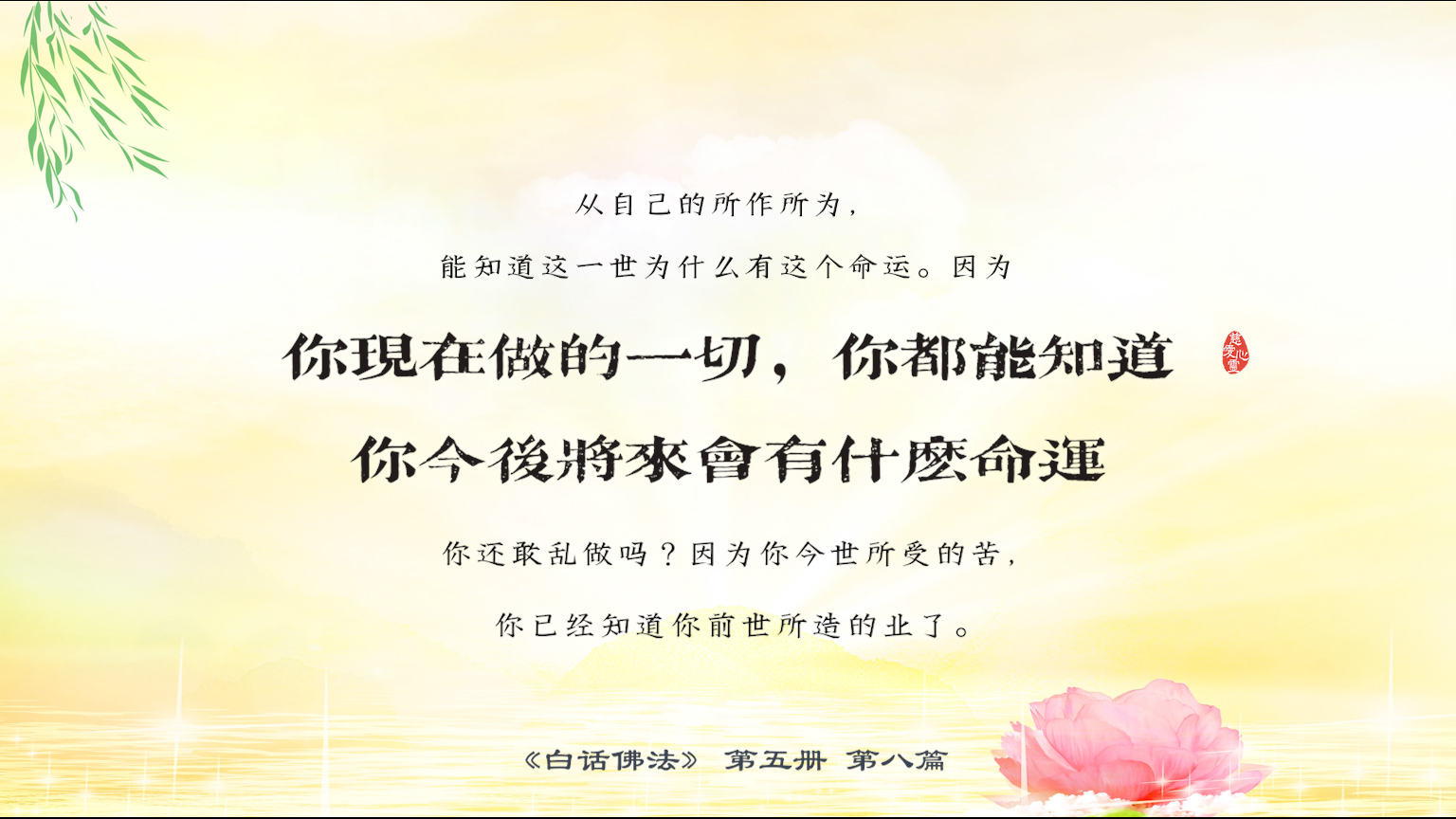 不限会员 5-8-31 从自己的所作所为,能知道这一世为什么有这个命运。因为你现在做的一切,你都能知道你今后将来会有什么命运,你还敢乱做吗?因为你今世所受的苦,你已经知道你前世所.【图】
