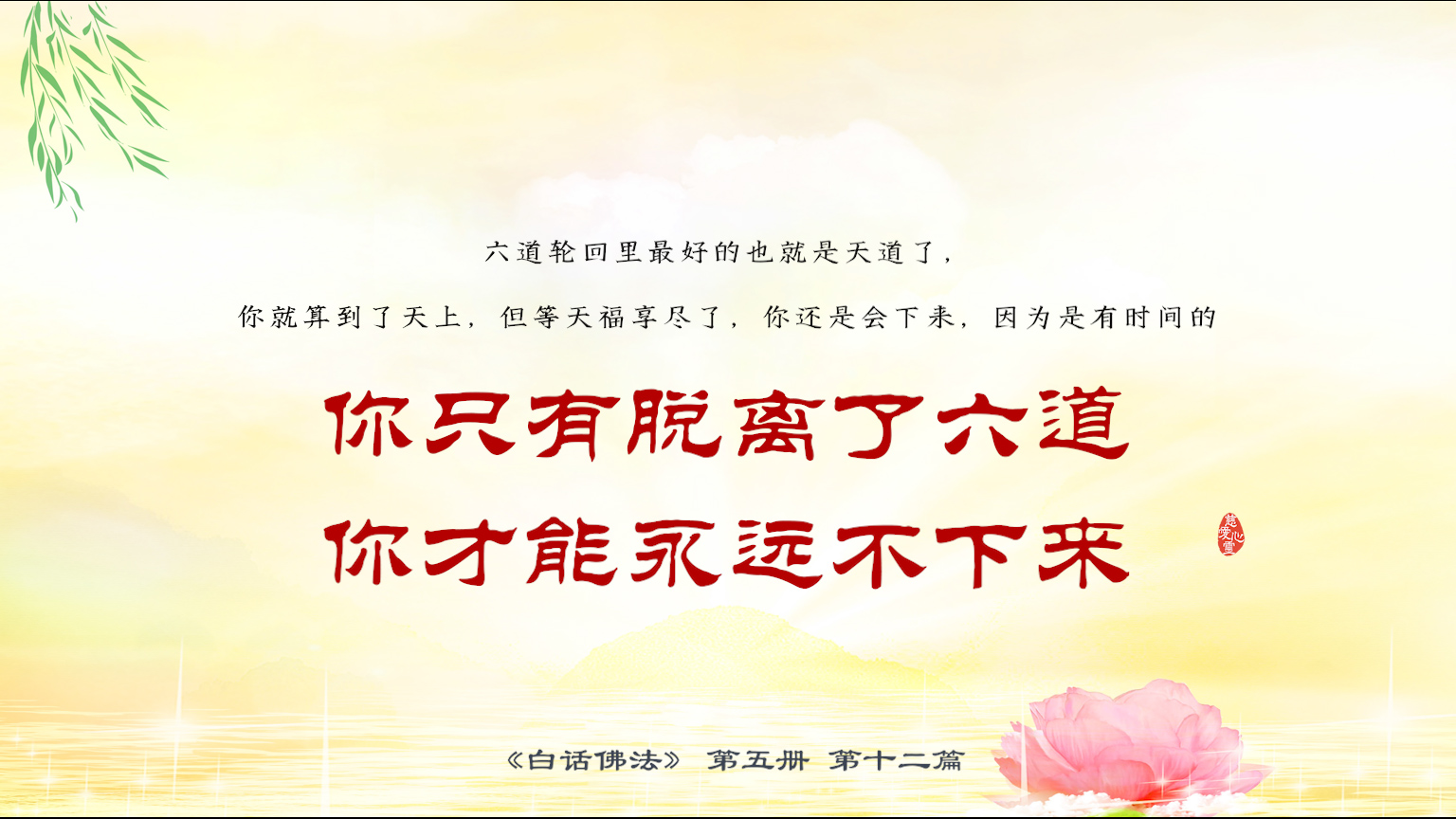 不限会员 5-12-25 六道轮回里最好的也就是天道了,你就算到了天上,但等天福享尽了,你还是会下来,因为是有时间的。你只有脱离了六道,你才能永远不下来.【图】