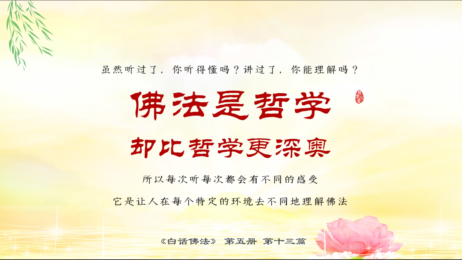 不限会员 5-13-18 虽然听过了,你听得懂吗?讲过了,你能理解吗?佛法是哲学,却比哲学更深奥,所以每次听每次都会有不同的感受,它是让人在每个特定的环境去不同地理解佛法.【图】