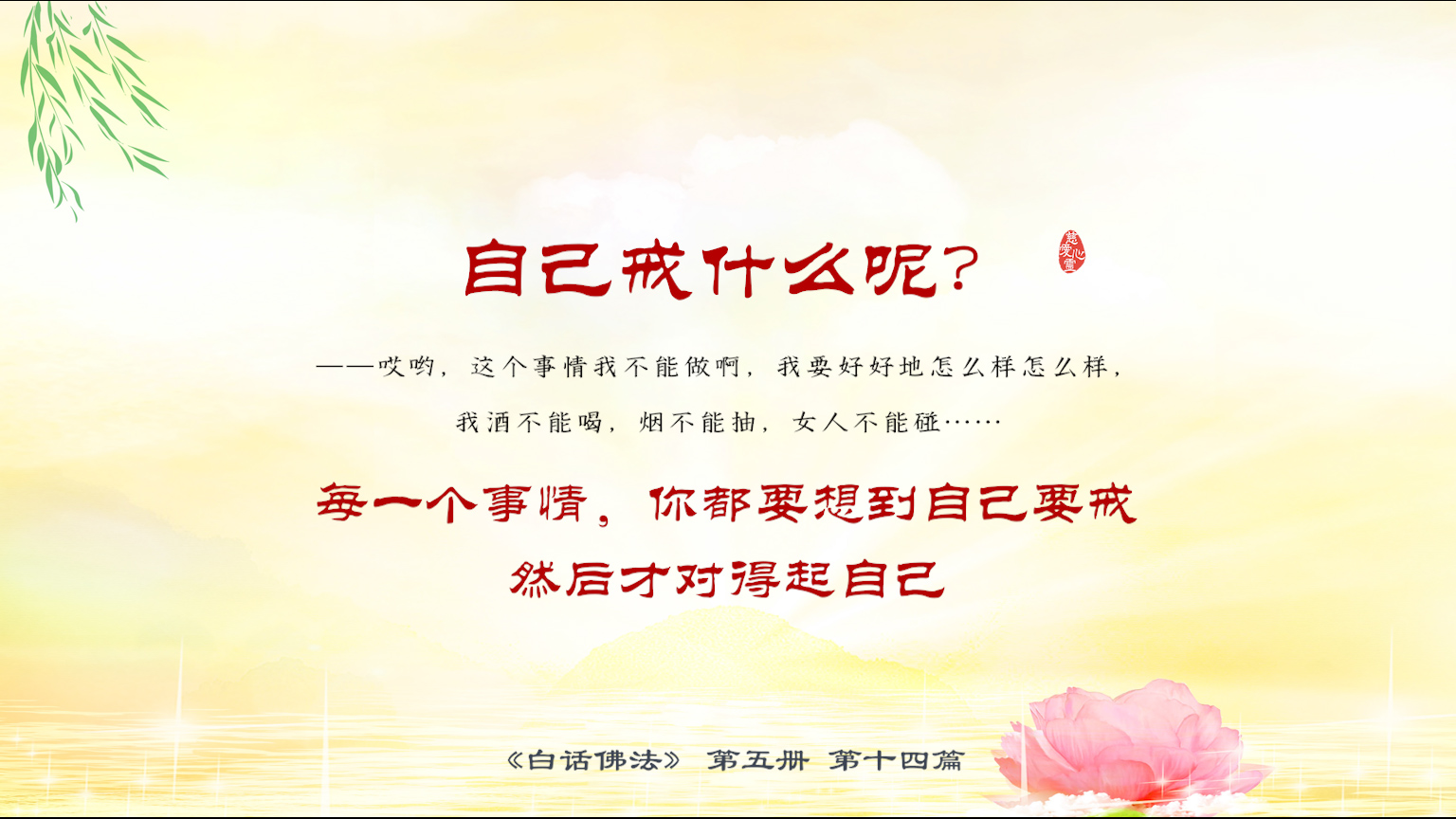 不限会员 5-14-30 自己戒什么呢?哎哟,这个事情我不能做啊,我要好好地怎么样怎么样,我酒不能喝,烟不能抽,女人不能碰,每一个事情,你都要想到自己要戒,然后才对得起自己.【图】