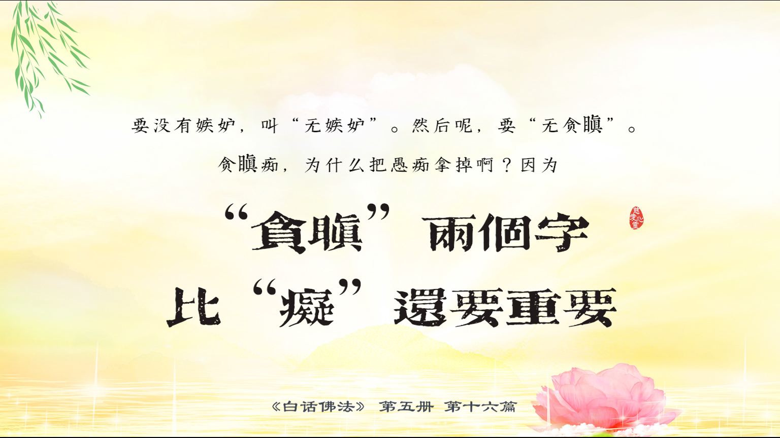 不限会员 5-16-3 没有嫉妒,叫“无嫉妒”。然后呢,要“无贪瞋”。贪瞋痴,为什么把愚痴拿掉啊?因为“贪瞋”两个字比“痴”还要重要.【图】