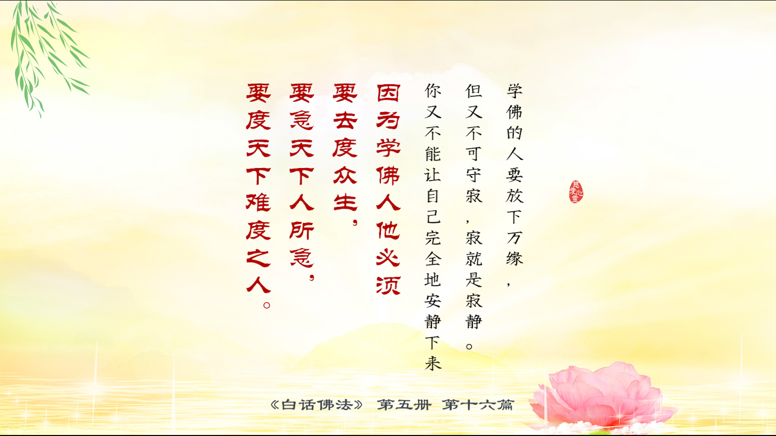不限会员 5-16-34 学佛的人要放下万缘,但又不可守寂,寂就是寂静。你又不能让自己完全地安静下来,因为学佛人他必须要去度众生,要急天下人所急,要度天下难度之人.【图】