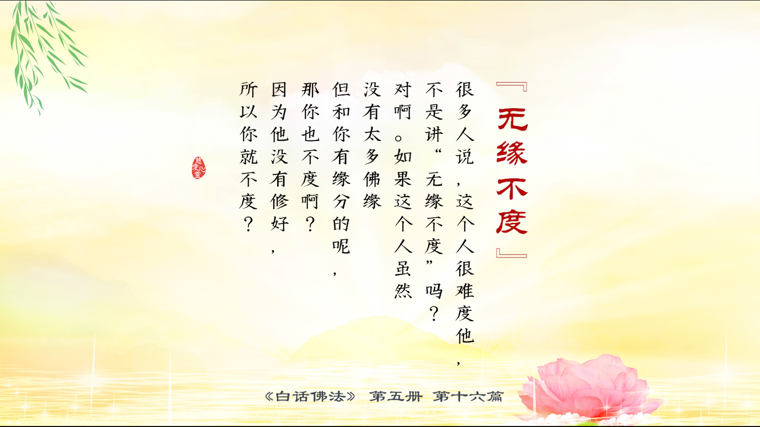不限会员 5-16-35很多人说,这个人很难度他,不是讲“无缘不度”吗?对啊。如果这个人虽然没有太多佛缘但和你有缘分的呢,那你也不度啊?因为他没有修好,所以你就不度?.【图】