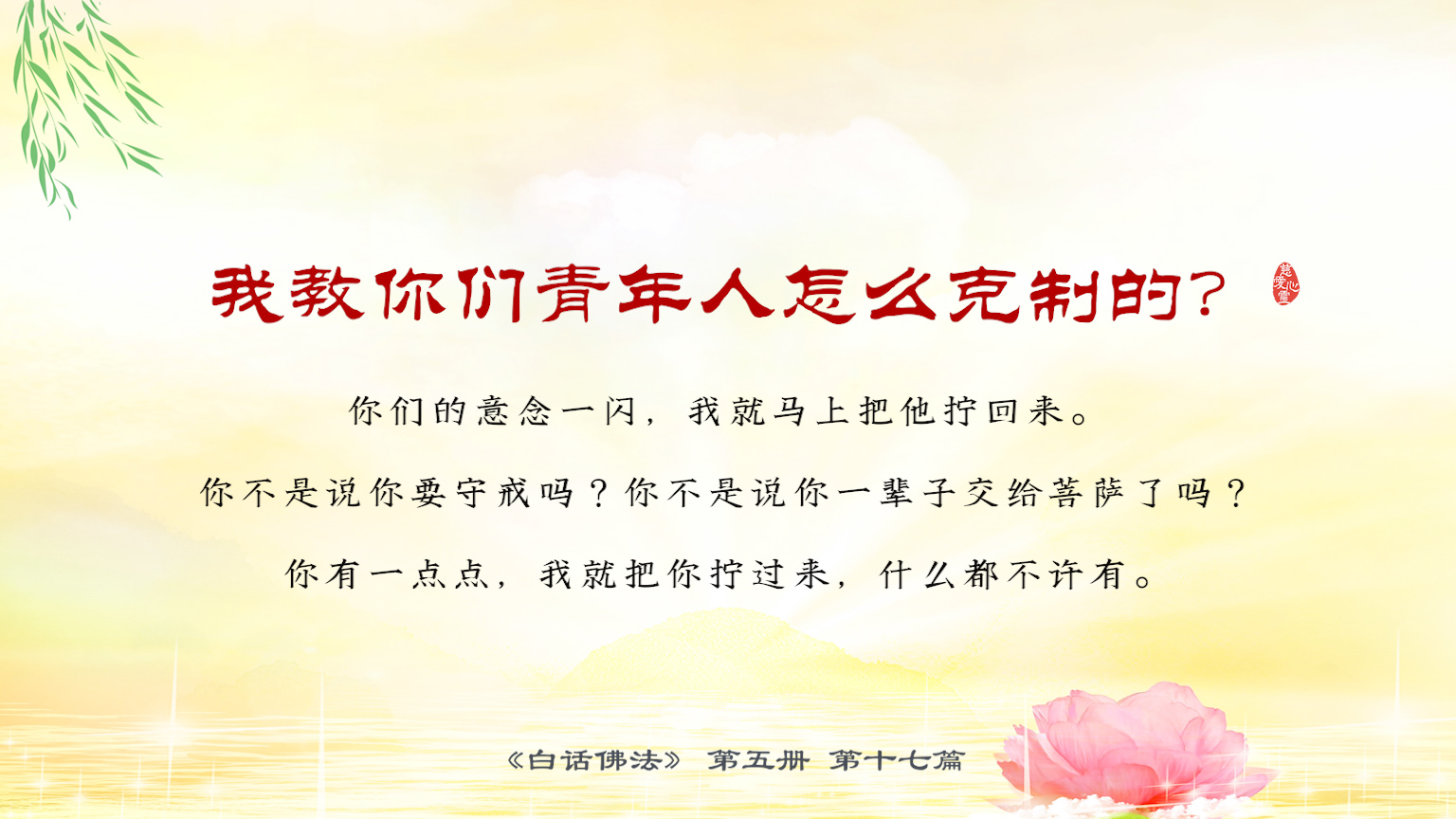 不限会员 5-17-11 我教你们青年人怎么克制的?你们的意念一闪,我就马上把他拧回来。你不是说你要守戒吗?你不是说你一辈子交给菩萨了吗?你有一点点,我就把你拧过来,什么都不许有.【图】
