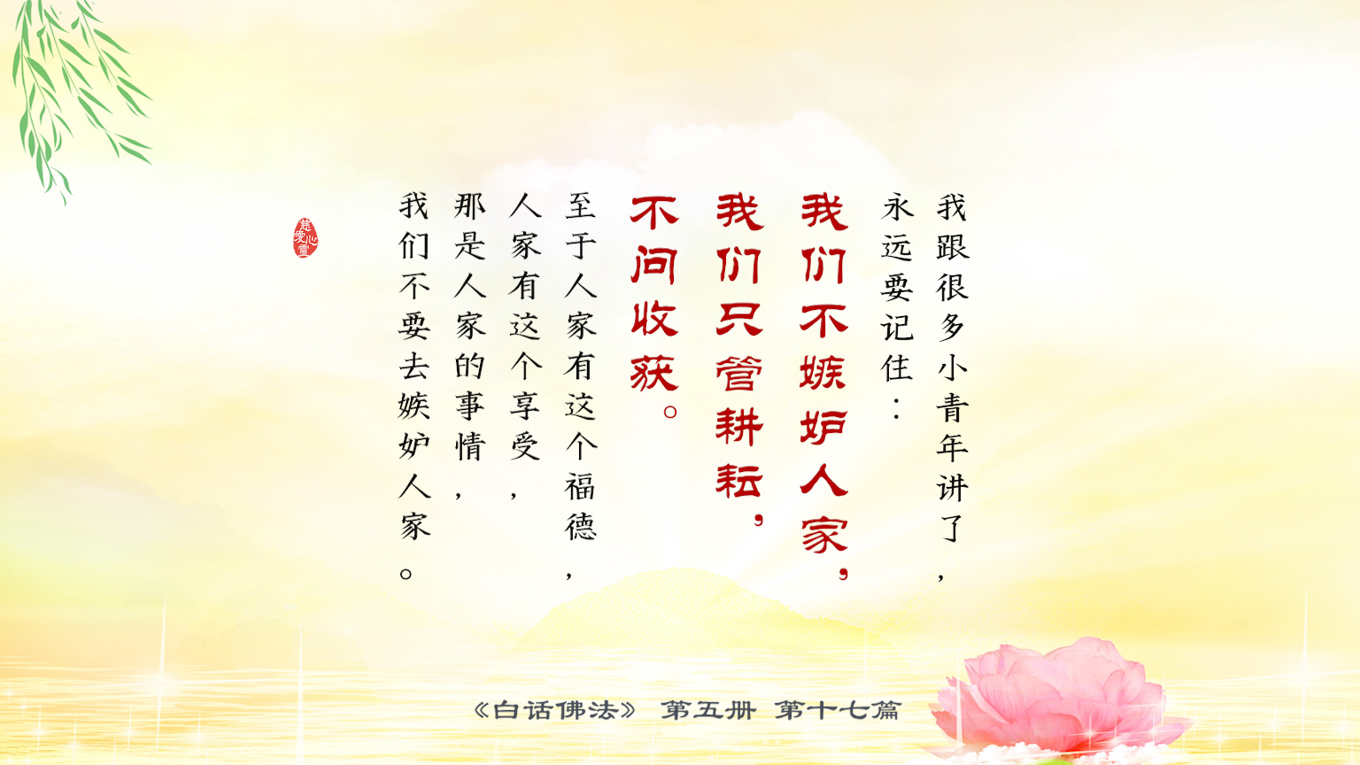 不限会员 5-17-28我跟很多小青年讲了,永远要记住:我们不嫉妒人家,我们只管耕耘,不问收获。至于人家有这个福德,人家有这个享受,那是人家的事情,我们不要去嫉妒人家.【图】
