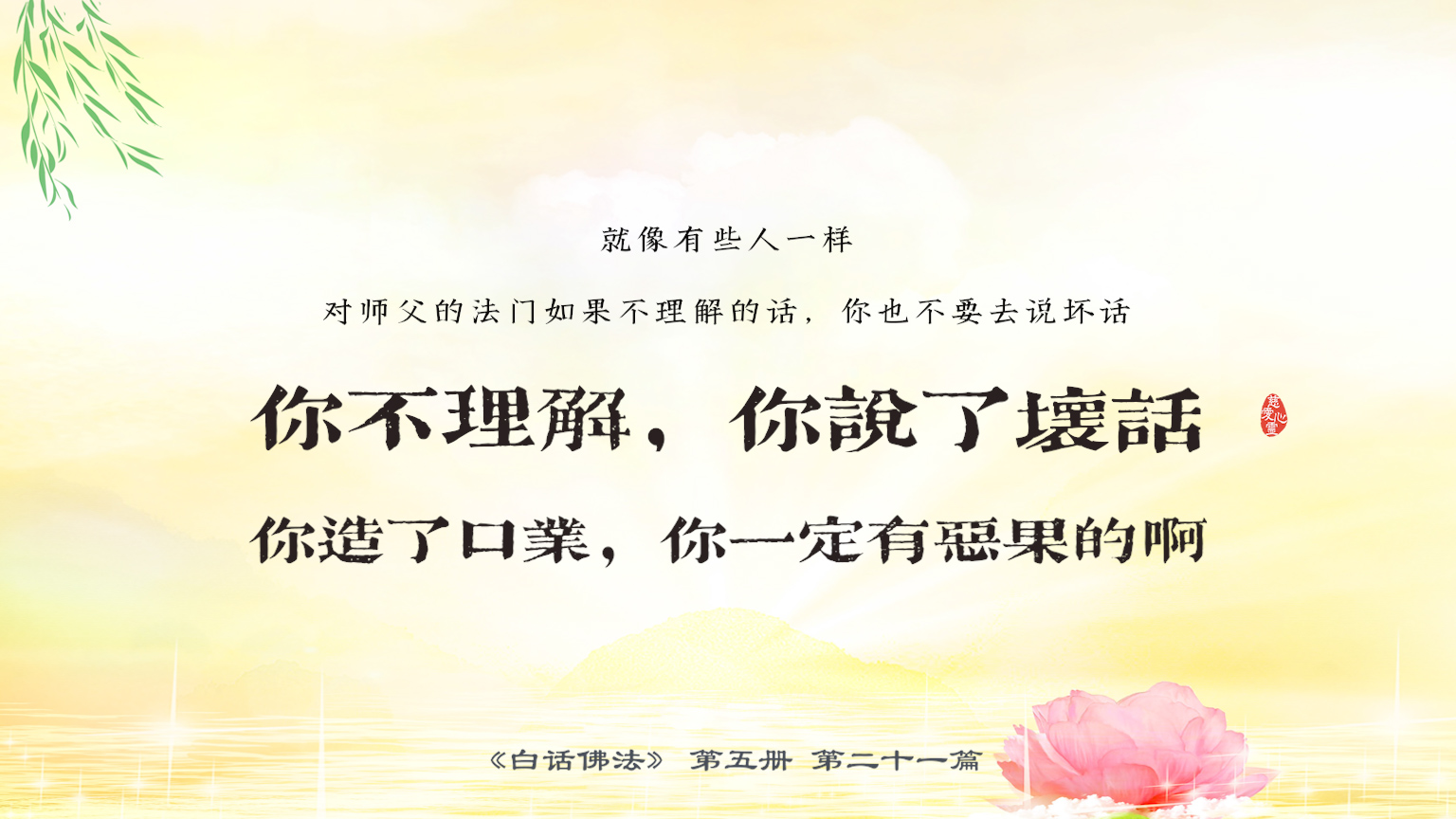 不限会员 5-21-7 有些人一样,对师父的法门如果不理解的话,你也不要去说坏话;你不理解,你说了坏话,你造了口业,你一定有恶果的啊.【图】