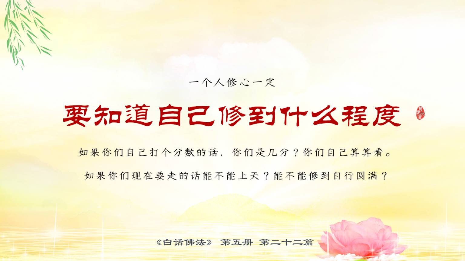 不限会员 5-22-1 一个人修心一定要知道自己修到什么程度,如果你们自己打个分数的话,你们是几分?你们自己算算看。如果你们现在要走的话能不能上天?能不能修到自行圆满?什么叫自行.【图】