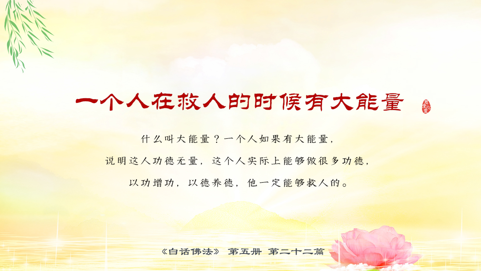 不限会员 5-22-16 一个人在救人的时候有大能量。什么叫大能量?一个人如果有大能量,说明这人功德无量,这个人实际上能够做很多功德,以功增功,以德养德,他一定能够救人的.【图】