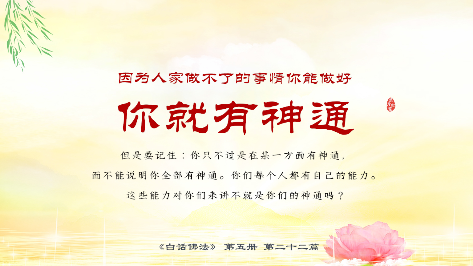 不限会员 5-22-17 因为人家做不了的事情你能做好,你就有神通。但是要记住:你只不过是在某一方面有神通,而不能说明你全部有神通。你们每个人都有自己的能力.【图】
