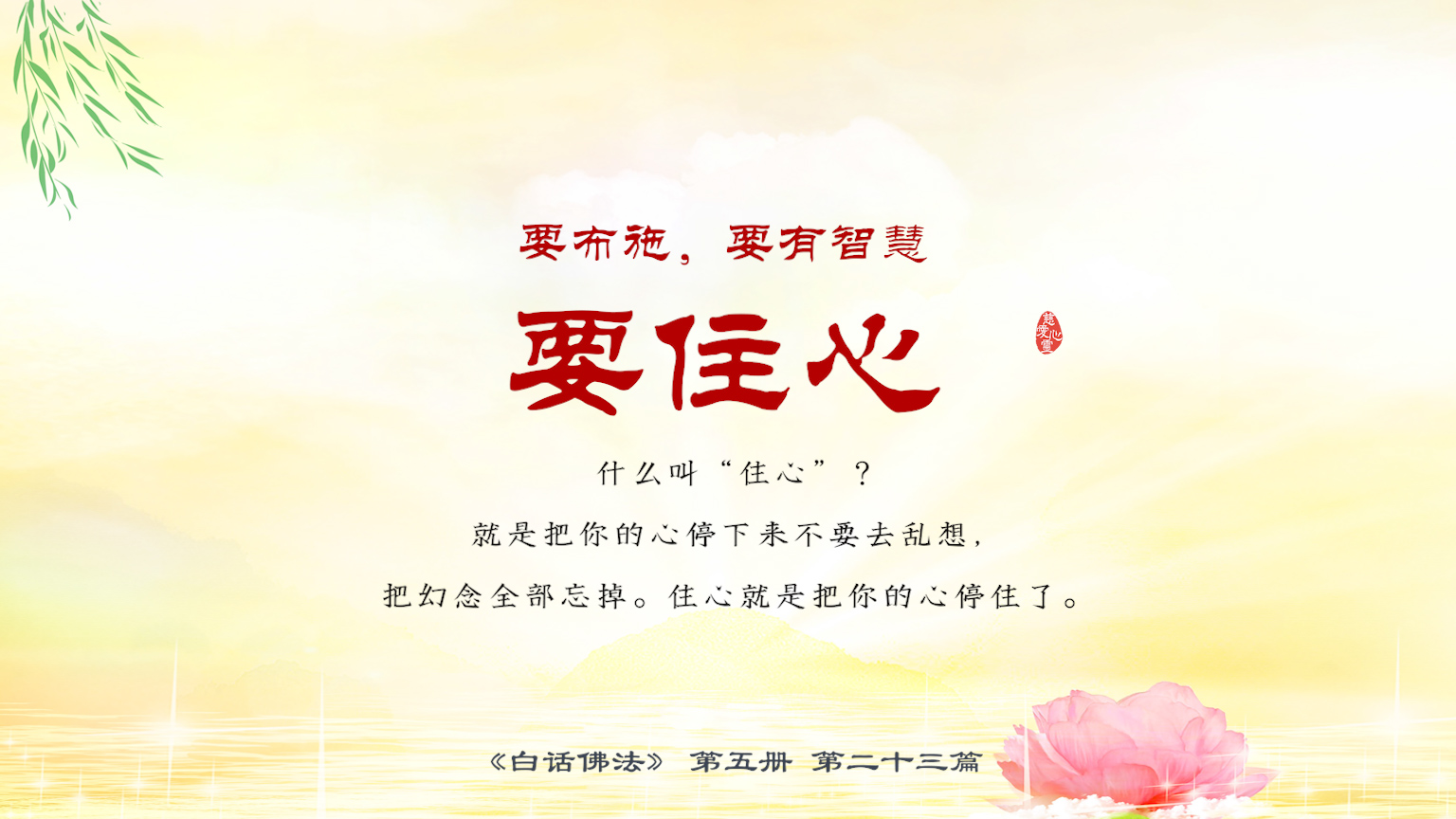 不限会员 5-23-17 要布施,要有智慧,要住心。什么叫“住心”?就是把你的心停下来不要去乱想,把幻念全部忘掉。住心就是把你的心停住了.【图】