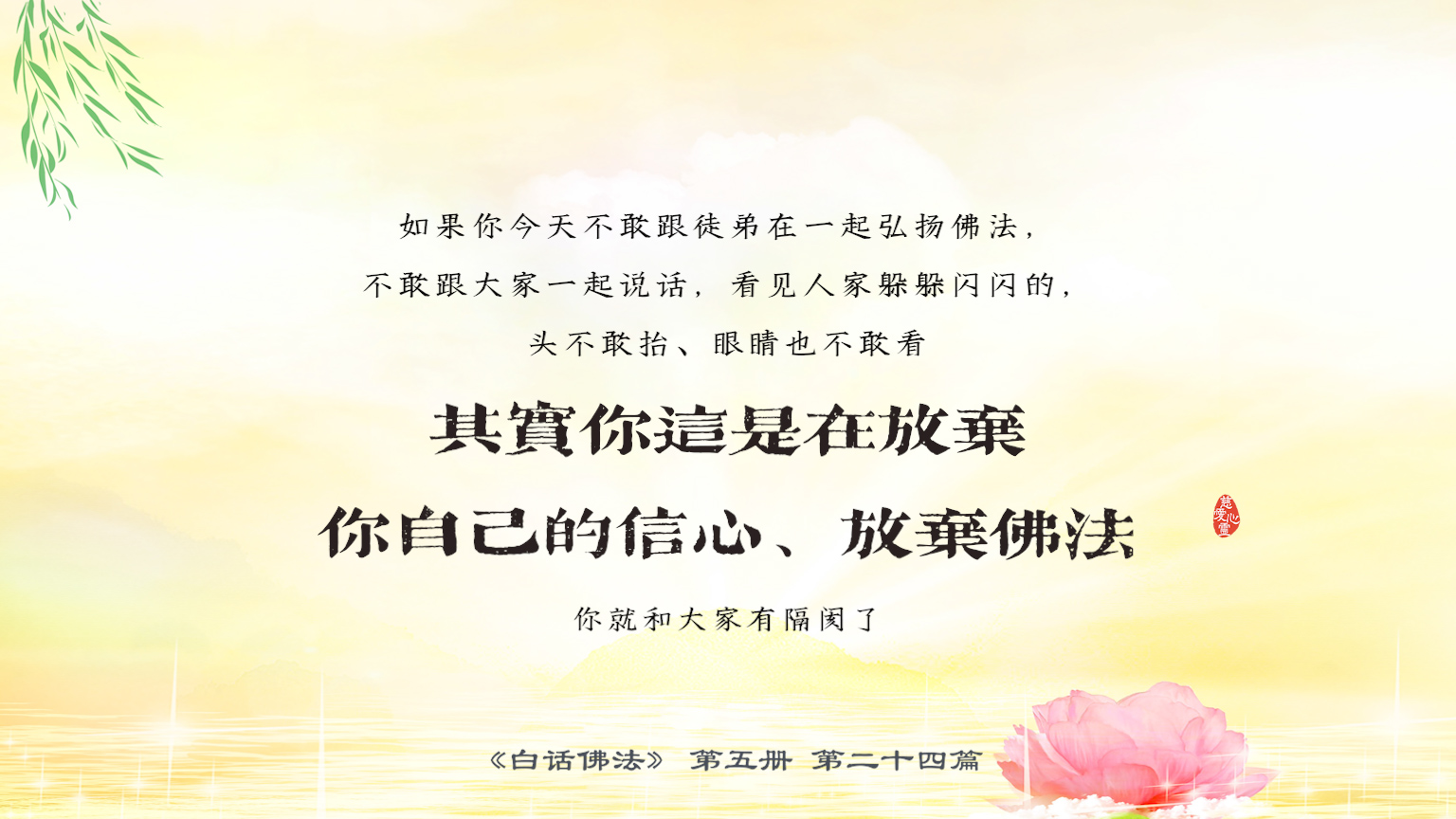 不限会员 5-24-6 如果你今天不敢跟徒弟在一起弘扬佛法,不敢跟大家一起说话,看见人家躲躲闪闪的,头不敢抬、眼睛也不敢看,其实你这是在放弃你自己的信心、放弃佛法,你就和大家有隔.【图】