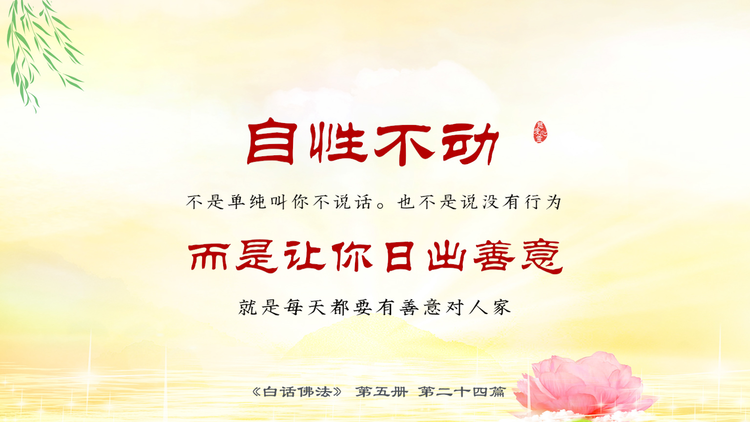 不限会员 5-24-9 自性不动不是单纯叫你不说话。很多人说自性不动那我就不讲话了,我的心就不动了。也不是说没有行为,而是让你日出善意.【图】