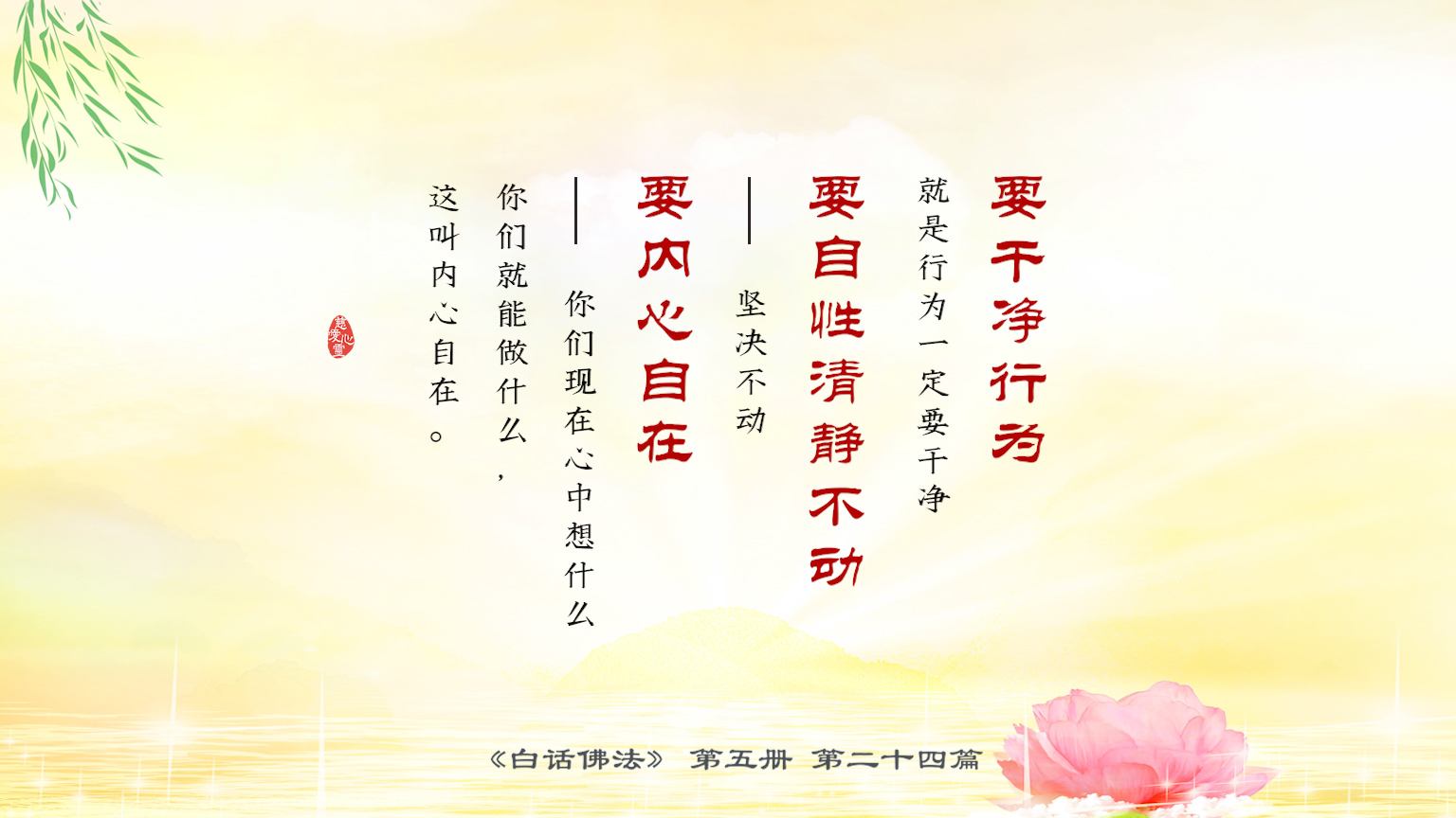 下一篇 : 5-24-11 心如流水常自在。心要无障无碍才能称得清静无碍
