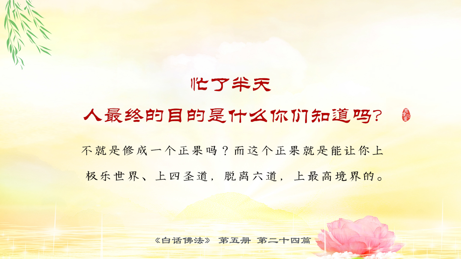 不限会员 5-24-23 忙了半天,人最终的目的是什么你们知道吗?不就是修成一个正果吗?而这个正果就是能让你上极乐世界、上四圣道,脱离六道,上最高境界的.【图】