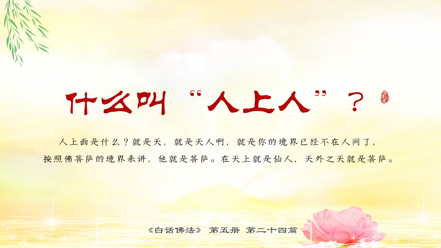 不限会员 5-24-43 什么叫“人上人”?人上面是什么?就是天,就是天人啊,就是你的境界已经不在人间了,按照佛菩萨的境界来讲,他就是菩萨。在天上就是仙人,天外之天就是菩萨.【图】