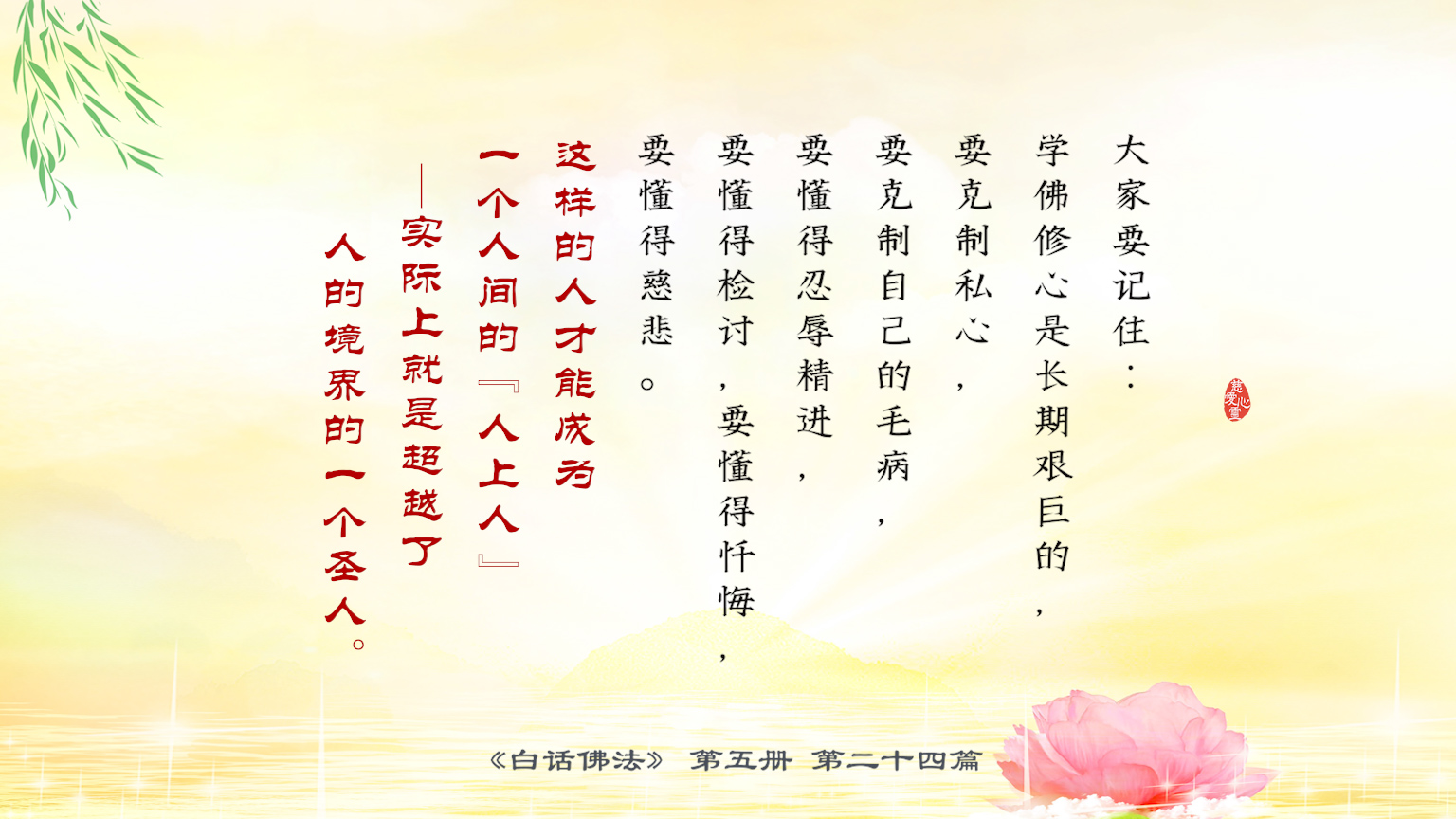 不限会员 5-24-44大家要记住:学佛修心是长期艰巨的,要克制私心,要克制自己的毛病,要懂得忍辱精进,要懂得检讨,要懂得忏悔,要懂得慈悲。这样的人才能成为一个人间的“人上人”.【图】