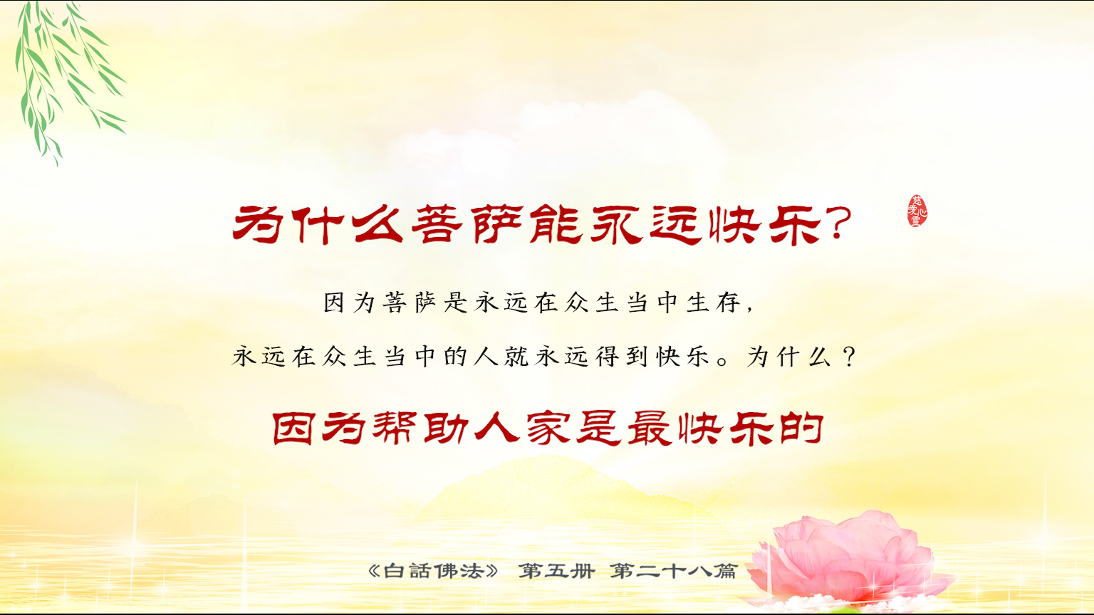 不限会员 5-28-4 为什么菩萨能永远快乐?因为菩萨是永远在众生当中生存,永远在众生当中的人就永远得到快乐。为什么?因为帮助人家是最快乐的.【图】