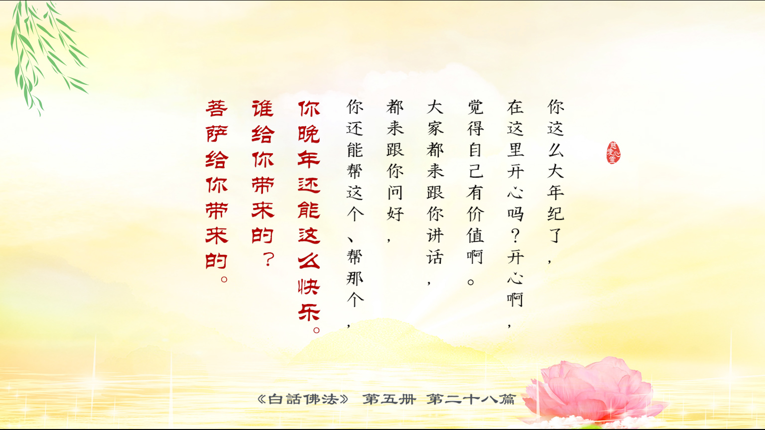 不限会员 5-28-10 你这么大年纪了,在这里开心吗?开心啊,觉得自己有价值啊。大家都来跟你讲话,都来跟你问好,你还能帮这个、帮那个,你晚年还能这么快乐。谁给你带来的?菩萨给你带.【图】
