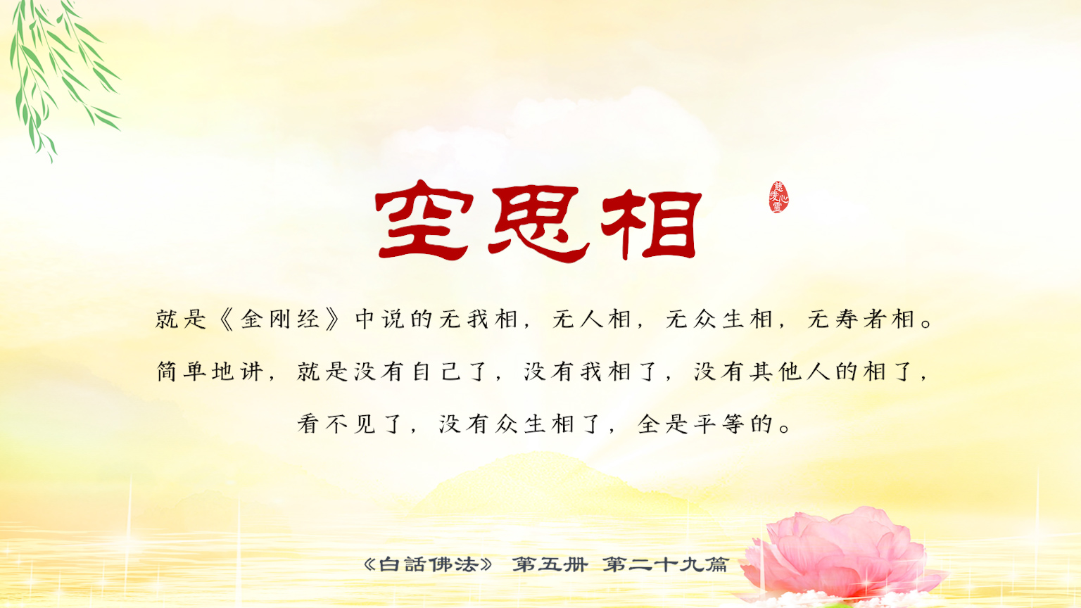 不限会员 5-29-13空思相就是《金刚经》中说的无我相,无人相,无众生相,无寿者相。简单地讲,就是没有自己了,没有我相了,没有其他人的相了,看不见了,没有众生相了,全是平等的.【图】