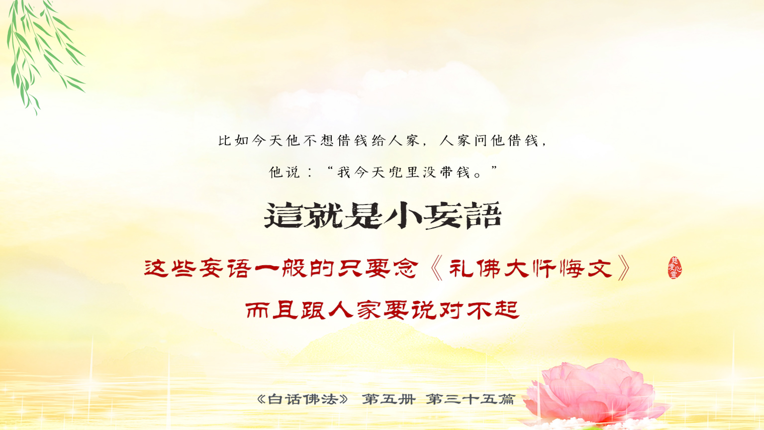 不限会员 5-35-4 比如今天他不想借钱给人家,人家问他借钱,他说:“我今天兜里没带钱。”这就是小妄语。这些妄语一般的只要念《礼佛大忏悔文》,而且跟人家要说对不起.【图】