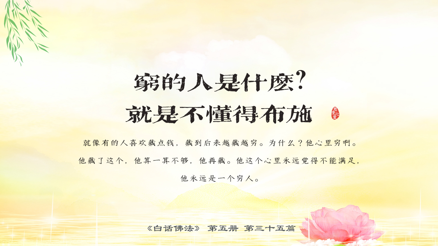 不限会员 5-35-19 穷的人是什么?就是不懂得布施。就像有的人喜欢藏点钱,藏到后来越藏越穷。为什么?他心里穷啊。他藏了这个,他算一算不够,他再藏。他这个心里永远觉得不能满足.【图】