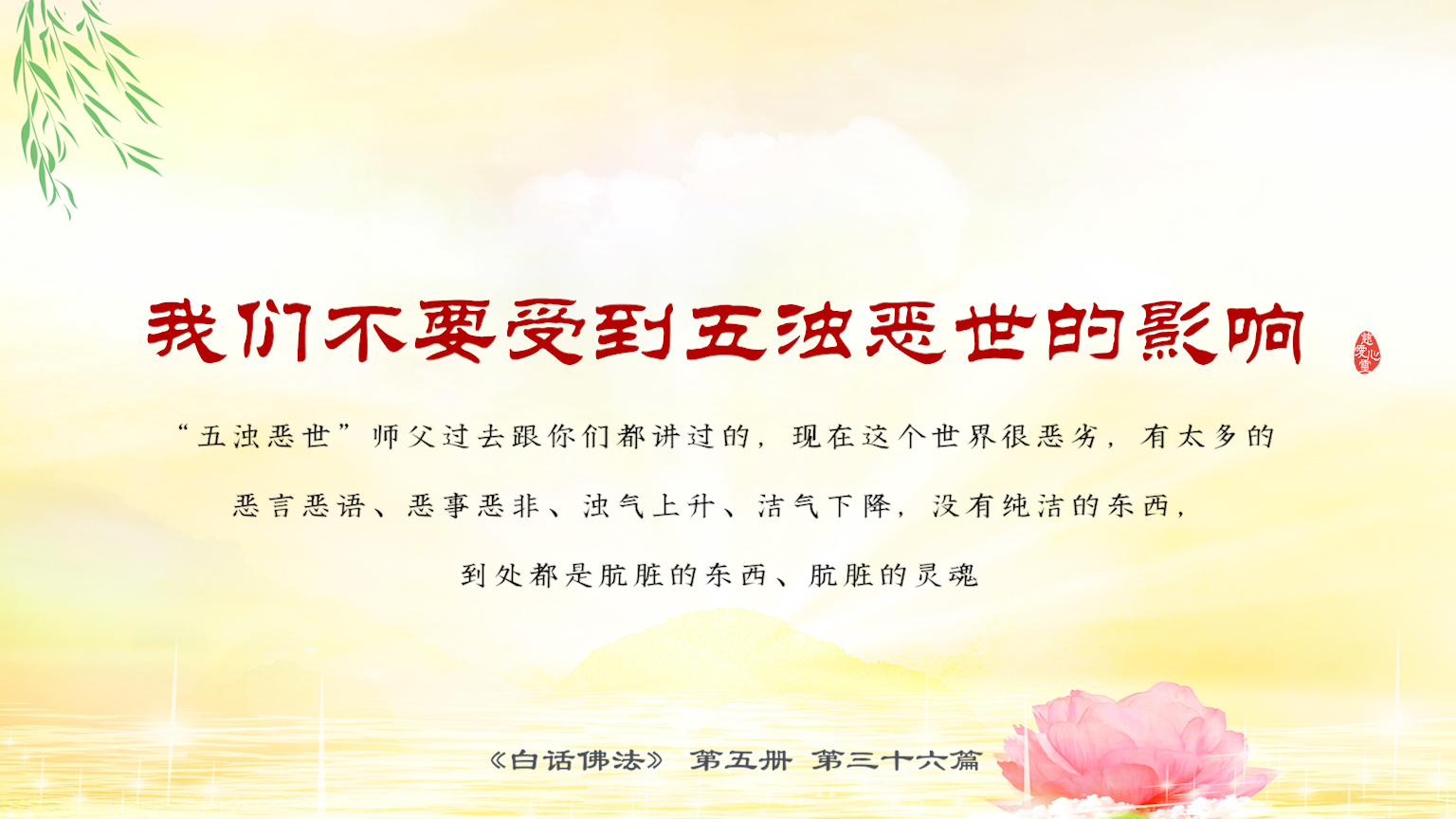 不限会员 5-36-17我们不要受到五浊恶世的影响。“五浊恶世”师父过去跟你们都讲过的,现在这个世界很恶劣,有太多的恶言恶语、恶事恶非、浊气上升、洁气下降,没有纯洁的东西.【图】