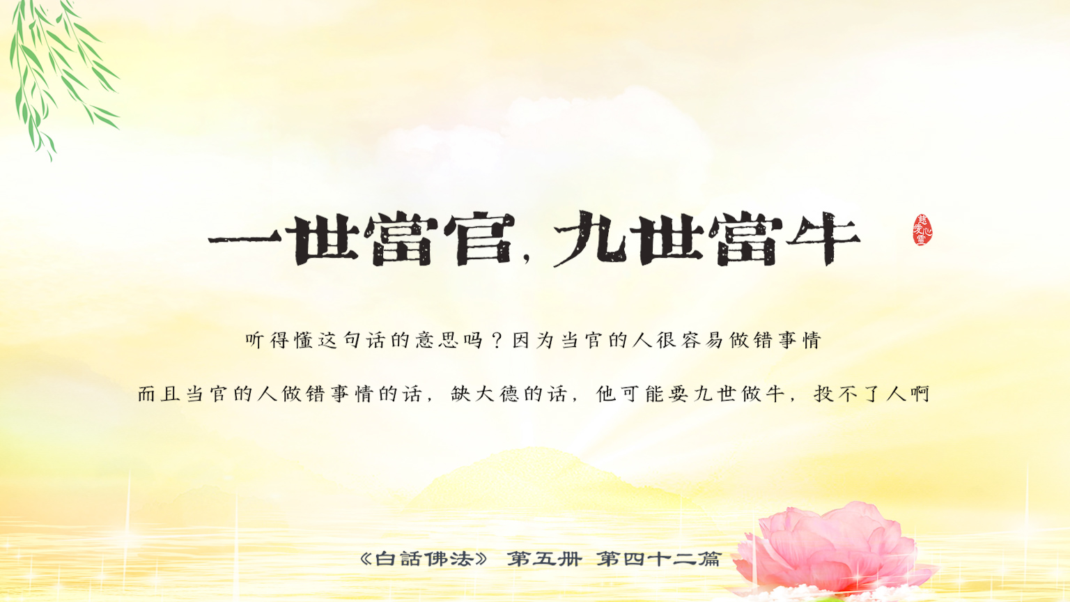 不限会员 5-42-9 “一世当官了,九世当牛。”听得懂这句话的意思吗?因为当官的人很容易做错事情,而且当官的人做错事情的话,缺大德的话,他可能要九世做牛,投不了人啊.【图】