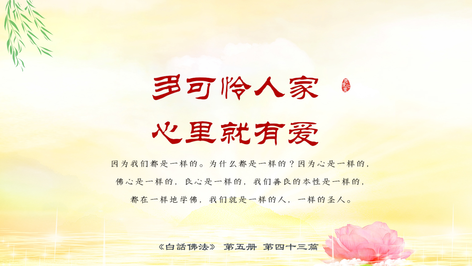 不限会员 5-43-4多可怜人家,心里就有爱。因为我们都是一样的。为什么都是一样的?因为心是一样的,佛心是一样的,良心是一样的,我们善良的本性是一样的,都在一样地学佛,我们就是一.【图】