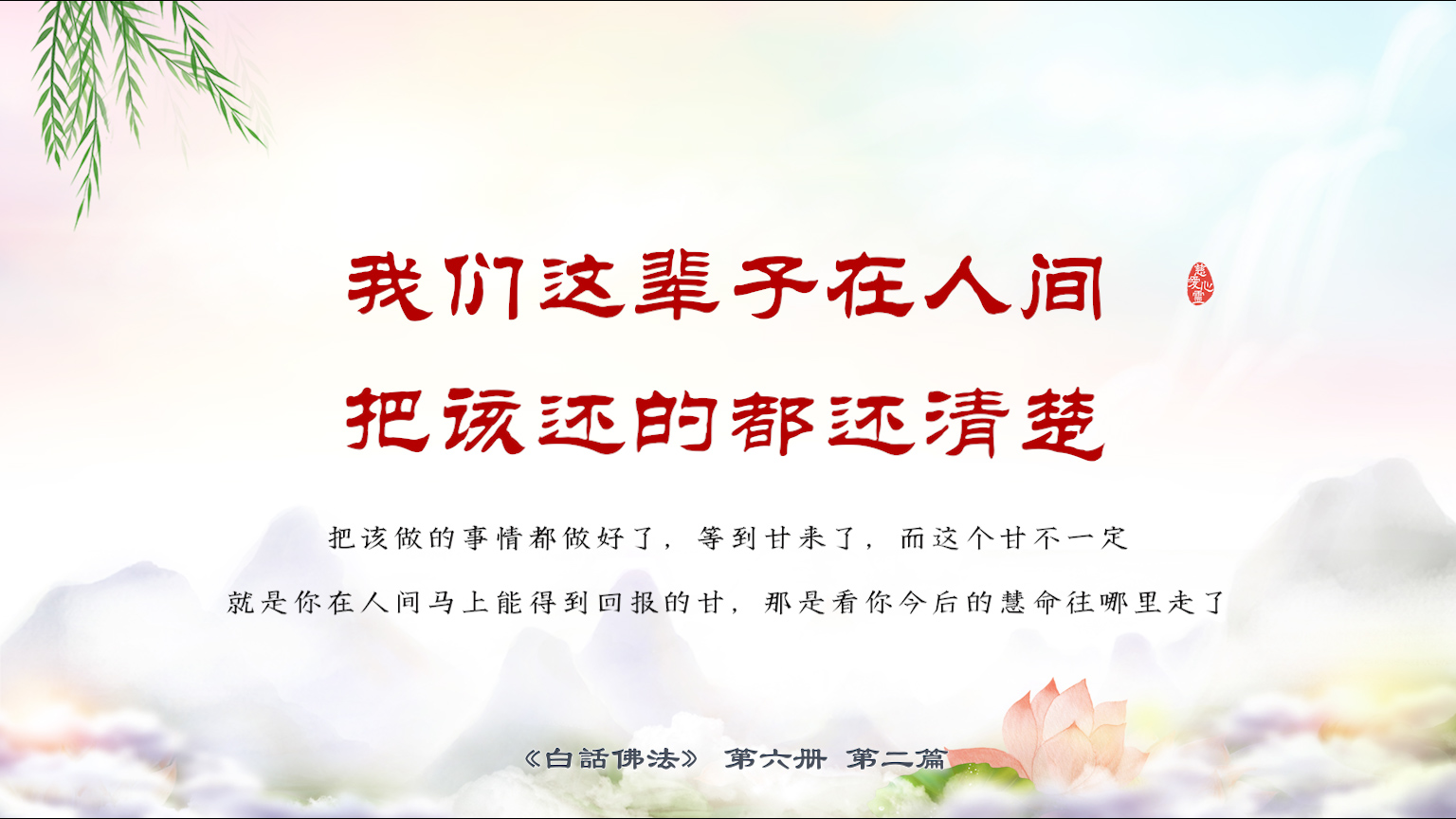 不限会员 6-2-16我们这辈子在人间把该还的都还清楚,把该做的事情都做好了, 等到甘来了,而这个甘不一定就是你在人间马上能得到回报的甘,那是看你今后的慧命往哪里走了。【图】