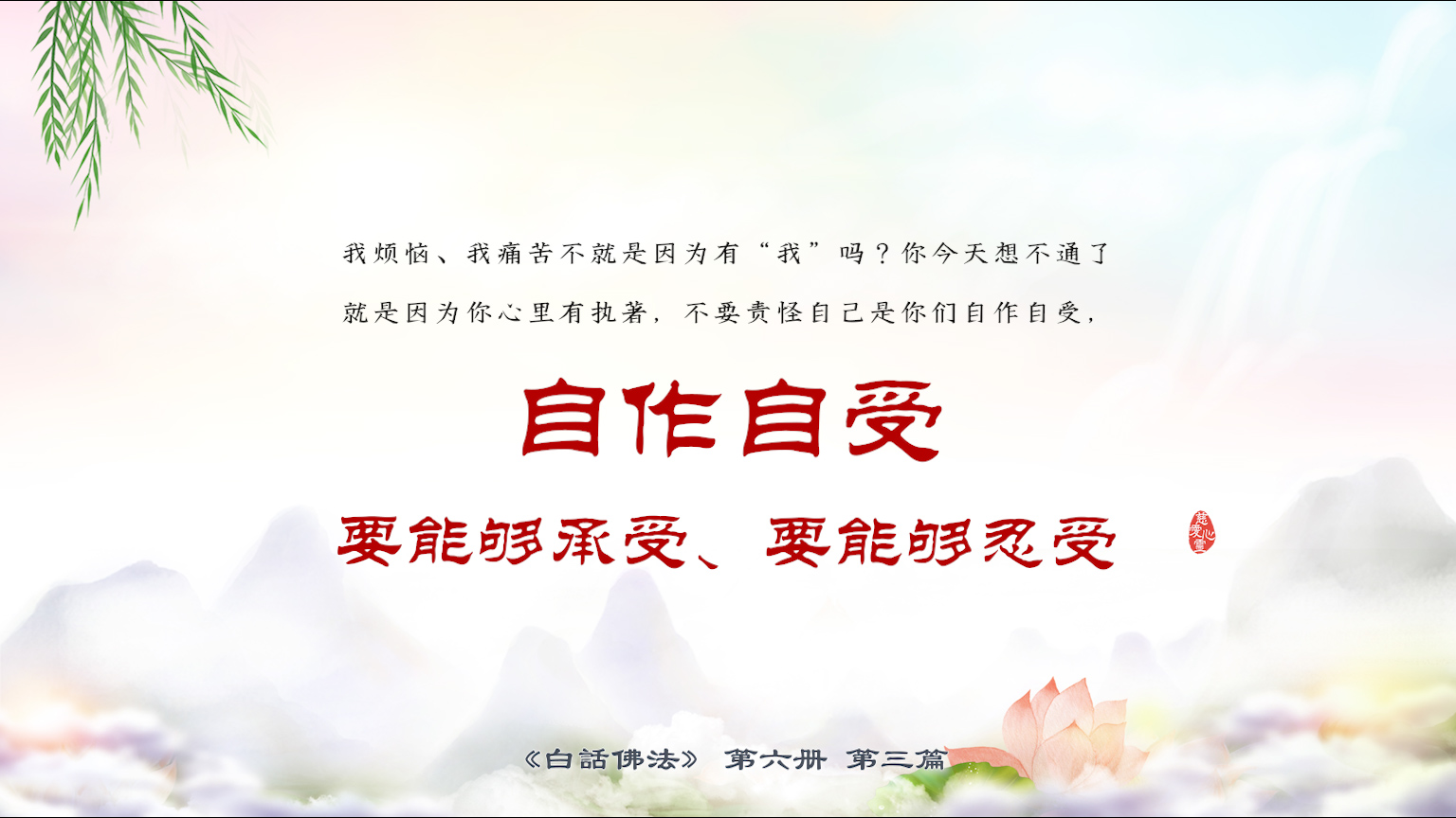 不限会员 6-3-17我烦恼、我痛苦不就是因为有“我”吗?你今天想不通了就是因为你心里有执著,不要责怪自己是你们自作自受,自作自受要能够承受、要能够忍受。【图】