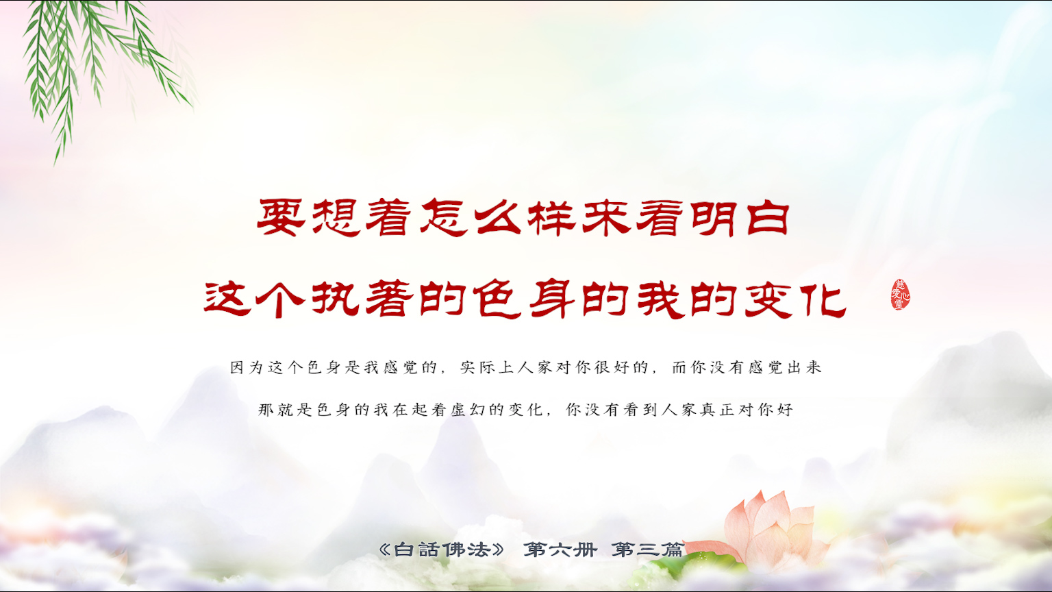 不限会员 6-3-30要想着怎么样来看明白这个执著的色身的我的变化,因为这个色身是我感觉的,实 际上人家对你很好的,而你没有感觉出来,那就是色身的 我在起着虚幻的变化【图】