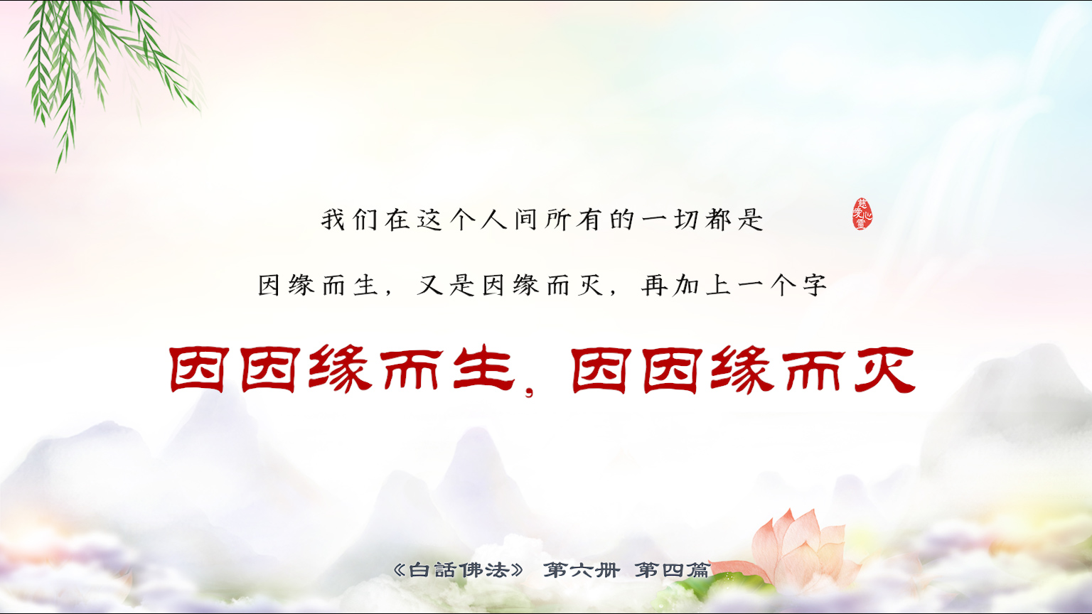 下一篇 : 6-4-9因缘有生法,什么意思呢?因缘,它是有出处的。这个出