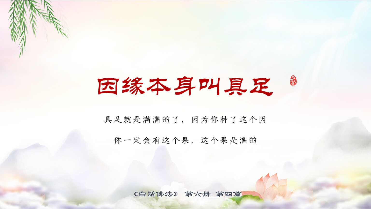 不限会员 6-4-12因缘本身叫具足,具足就是满满的了,因为你种了这个因,你一定会有这个果,这个果是满的。【图】