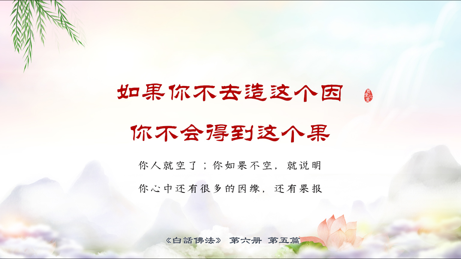 不限会员 6-5-7如果你不去造这个因,你不会得到这个果,你人就空了;你如果不空,就说明你心中还有很多的因缘,还有果报。【图】