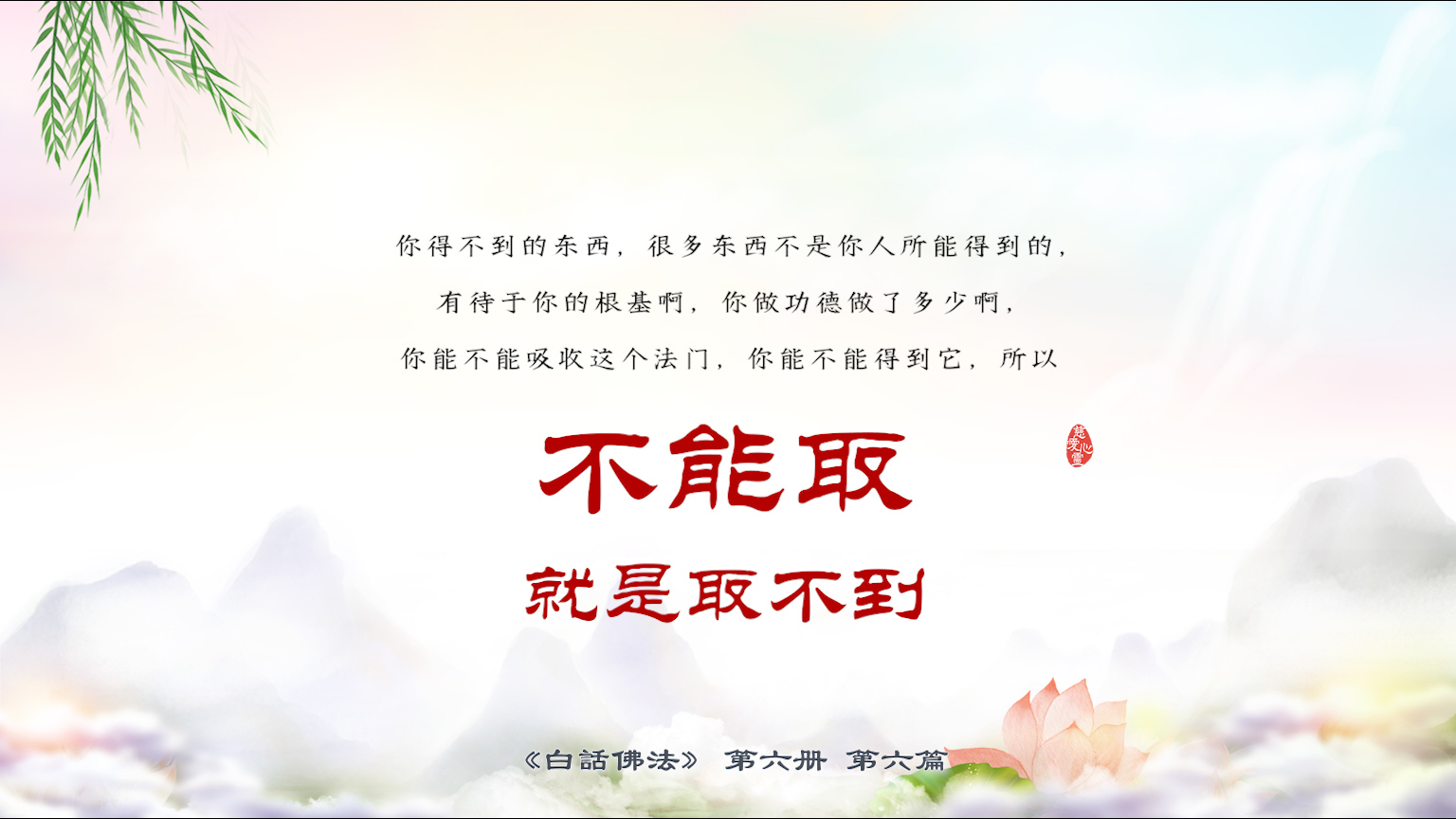 不限会员 6-6-2你得不到的东西,很多东西不是你人所能得到的,有待于你的根基啊,你做功德做了多少啊,你能不能吸收这个法门,你能不能得到它,所以,不能取,就是取不到。【图】