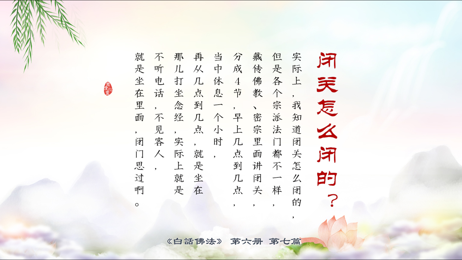 不限会员 6-7-15闭关怎么闭的?实际上,我知道闭关怎么闭的,但是各个宗派法门都不一 样,藏传佛教、密宗里面讲闭关,分成4节,早上几点到几点,当中休息一个小时,再从几点到几点【图】