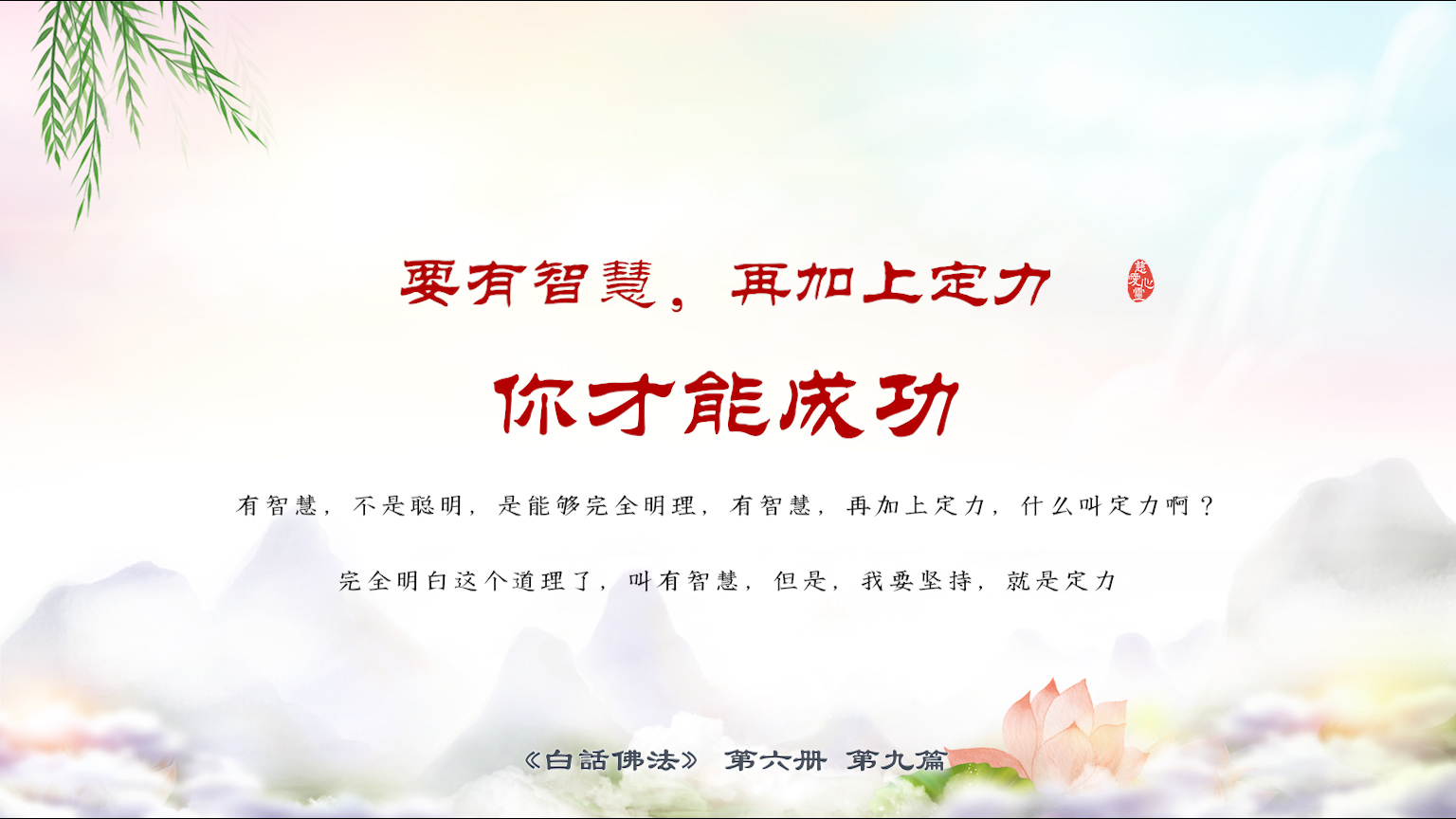 不限会员 6-9-12要有智慧,再加上定力,你才能成功。有智慧,不是聪明,是能够完全明理,有智慧,再加上定力,什么叫定力啊?完全明白这个道理了,叫有智慧,但是,我要坚持,就是定力。【图】