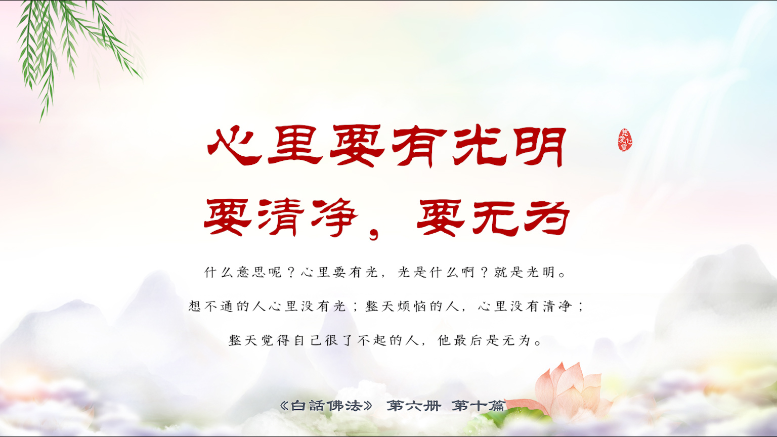 下一篇 : 6-10-4 一个人心里要光明,要清净,要无为,这个人才能了