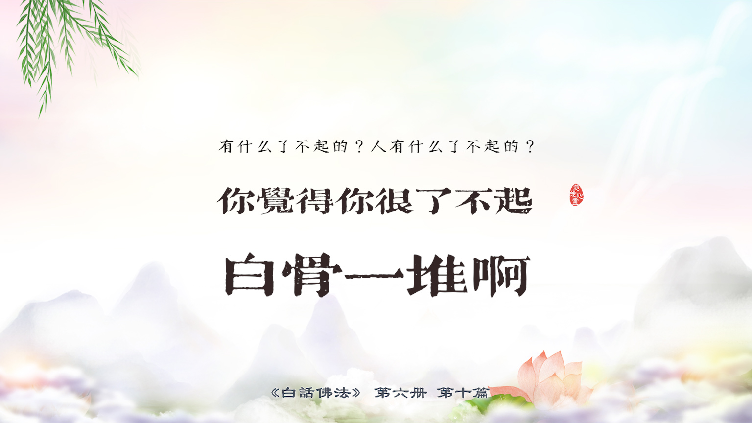 下一篇 : 6-10-6 你要能够经常想到菩萨的光,心中要清净,我这个人