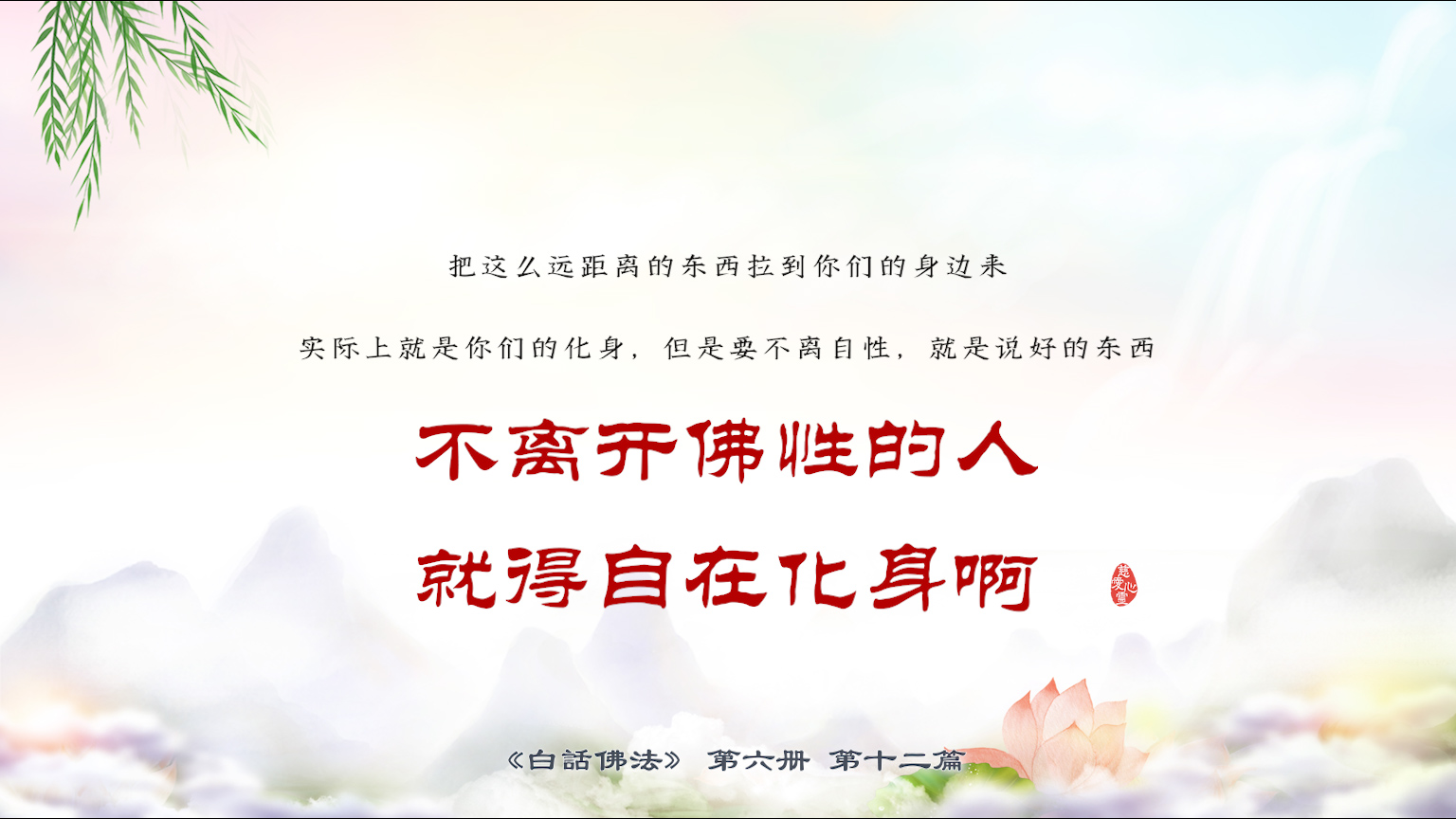 不限会员 6-12-17 把这么远距离的东西拉到你们的身边来,实际上就是你们的化身,但是要不离自性,就是说好的东西,不离开佛性的人,就得自在化身啊【图】