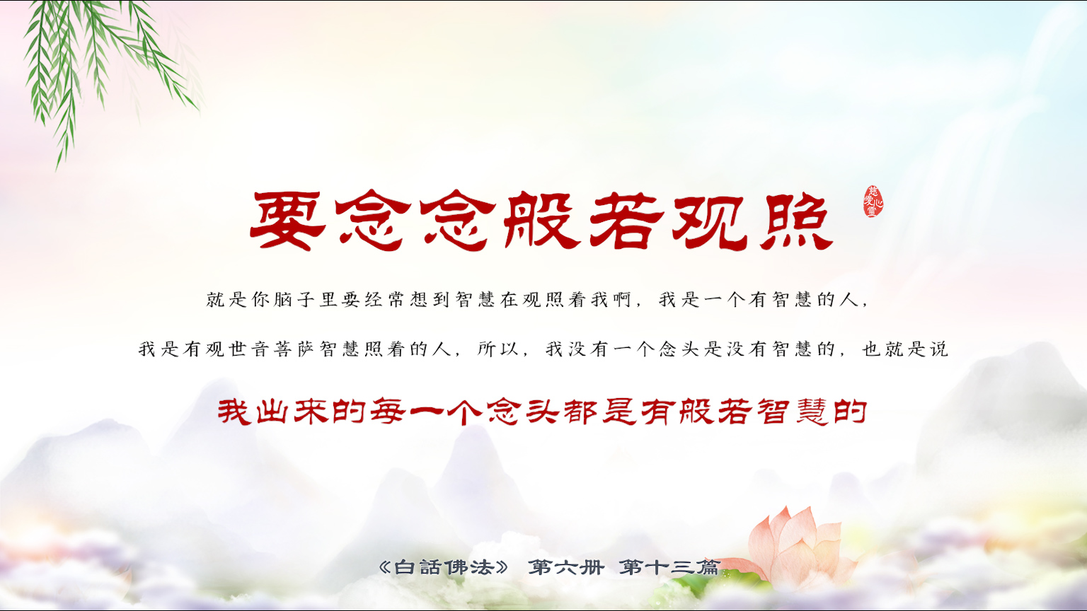 不限会员 6-13-3 要念念般若观照,就是你脑子里要经常想到智慧在观照着我啊,我是一个有智慧的人,我是有观世音菩萨智慧照着的人,所以,我没有一个念头是没有智慧的【图】