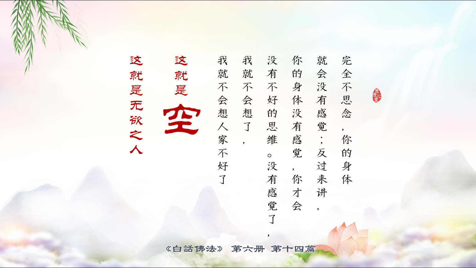 不限会员 6-14-25 完全不思念,你的身体就会 没有感觉;反过来讲,你的身体没有感觉,你才会没有不 好的思维。没有感觉了,我就不会想了,我就不会想人家 不好了,这就是空,这就是无欲【图】