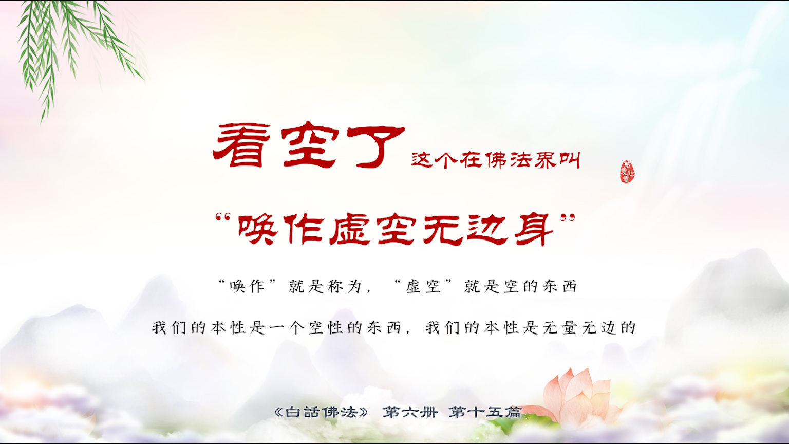 不限会员 6-15-17 看空了。这个在佛法界叫“唤作虚空无边身”。 “唤作”就是称为,“虚空”就是空的东西,我们的本性是一个空性的东西,我们的本性是无量无边的【图】